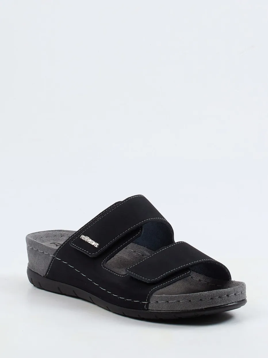 Funktion trifft Schlichtheit.Die Marke Rohde präsentiert mit diesen Komfort-Pantoletten ein Modell für anspruchsvolle Herren. Nach einem langen Tag bieten die ergonomisch geformten Fußbetten angenehme Entlastung. Schwarzes Nubukleder, samtig angeschliffen und akzentuiert durch helle Kontrastnähte, sorgt für eine moderne Optik. Zwei breite, verstellbare Klettverschlüsse garantieren passgenauen Halt, während eine keilförmige Gummisohle mit rutschhemmender Struktur für Stabilität sorgt. Das minimalistische Design ist von funktionalem Komfort und der Health-Inspired Footwear-Bewegung inspiriert. Ideal kombinierbar mit legerer Homewear oder leichten Freizeitoutfits. Zeitlos bequem mit Fokus auf Alltagstauglichkeit – Qualität von Rohde.