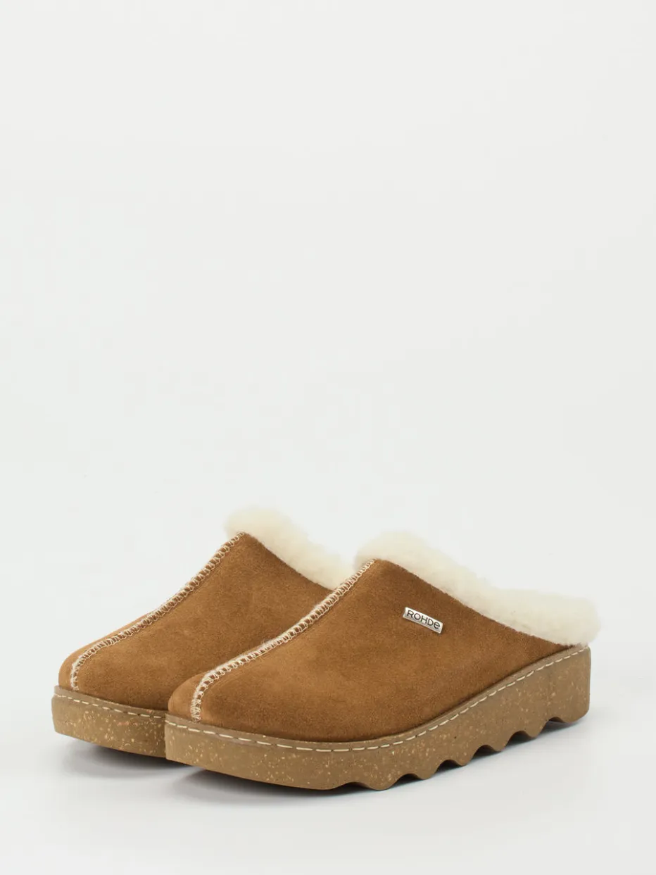 Skandinavischer Komfort trifft auf hochwertige Materialien.Die Marke Rohde steht bei diesen cognacbraunen Damen-Pantoffeln für wohlige Wärme an kalten Tagen. Ob beim gemütlichen Frühstück am Wochenende oder für entspannte Abende zu Hause – das samtig-matte Veloursleder schafft gemeinsam mit dem sichtbaren Kunstfellrand eine wohnliche Ästhetik. Das Futter aus weicher Textilfaser schmiegt sich angenehm an den Fuß, während die wellenförmig profilierte Gummisohle sicheren Halt bietet. Der offene Clog-Schnitt unterstreicht die lässige Silhouette und macht den Einstieg einfach. Die natürlichen Farbnuancen harmonieren mit dem Cozy-Comfort-Trend der Saison. Ideal für stilvollen Loungewear-Komfort mit markentypischer Qualität.