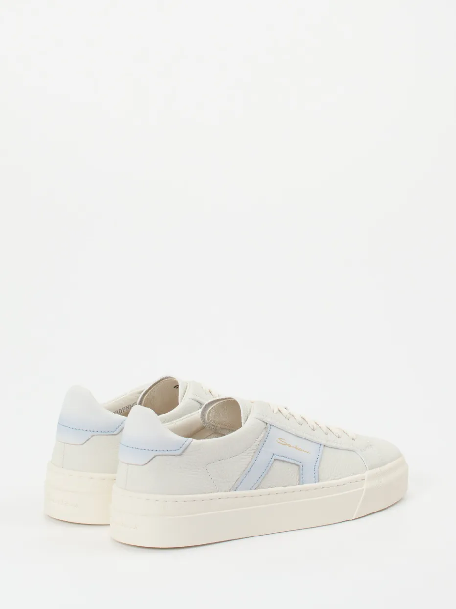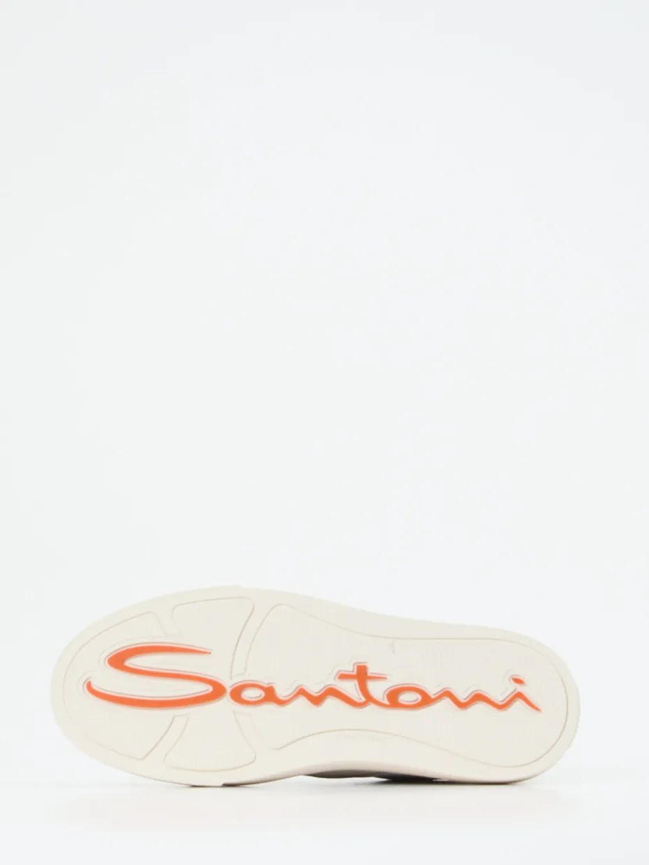 Feinstes Lammleder mit subtiler Narbung und harmonisch gesetzte Farbakzente verleihen diesem Low-Top von Santoni einen puristischen, modernen Charakter.