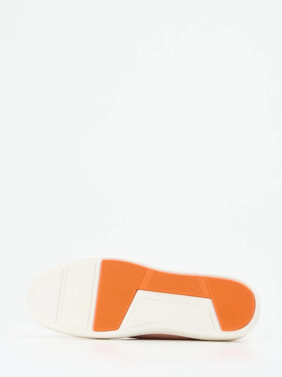 Pastell trifft auf Komfort.Der Damen-Sneaker von Santoni vereint italienisches Understatement mit modernem Design. Für Tage voller Bewegung oder entspannte City-Walks bietet der Sneaker aus hochwertigem Kalbleder in mattem Blassrosa ein angenehm weiches Tragegefühl. Die zurückhaltende, klassische Rundsilhouette wird durch eine weiße Plateausohle und eine orangefarbene Laufsohle akzentuiert. Details wie Ton-in-Ton-Nähte, eine verstärkte Ferse und die klare Schnürung unterstreichen den minimalistischen Charakter. Passend zum Soft-Pastels-Trend lässt sich der Look vielseitig mit leichten Sommerpieces kombinieren. Hochwertige Materialien und subtile Eleganz in einer Zumnorde-Exklusivlinie.