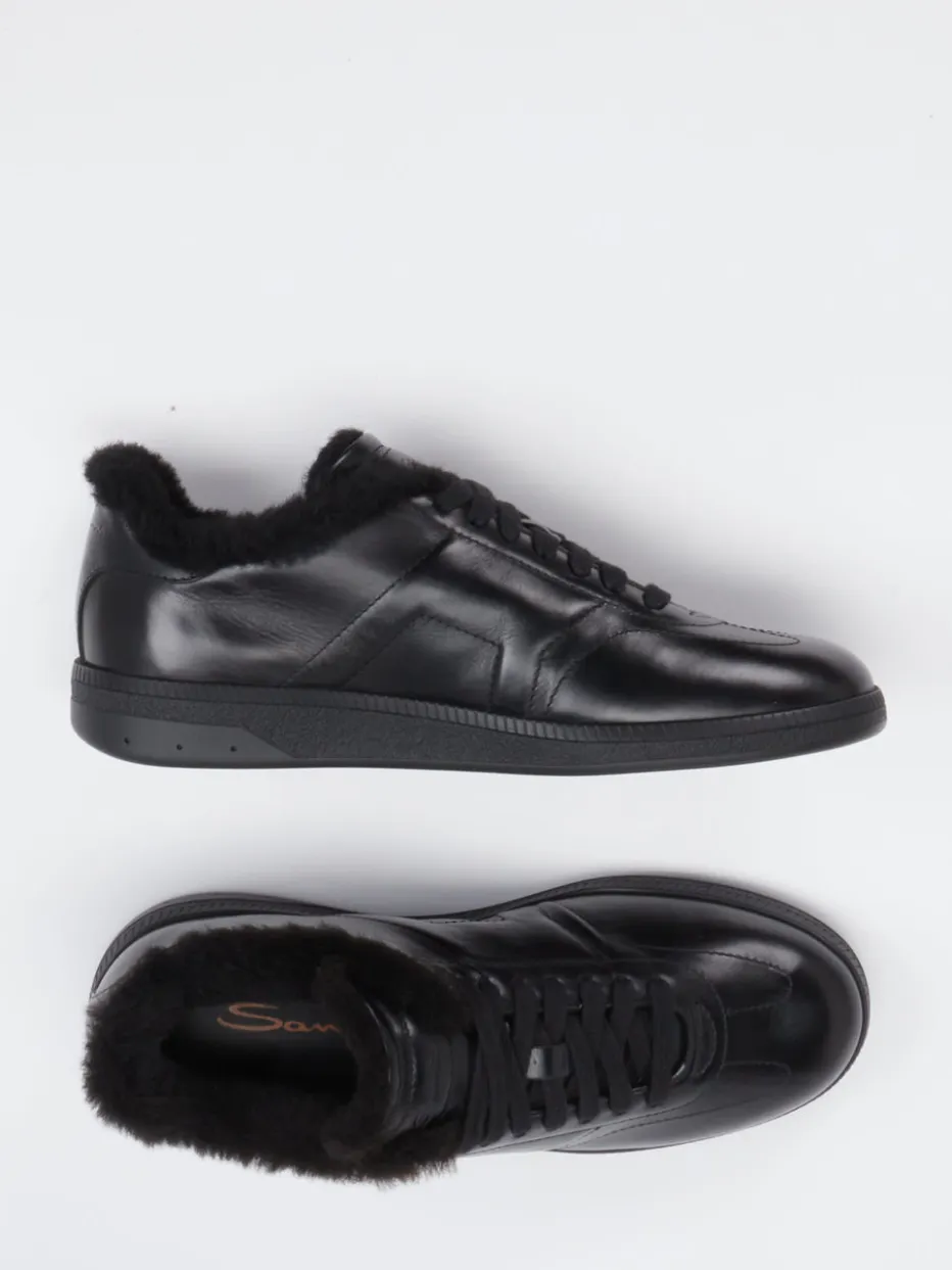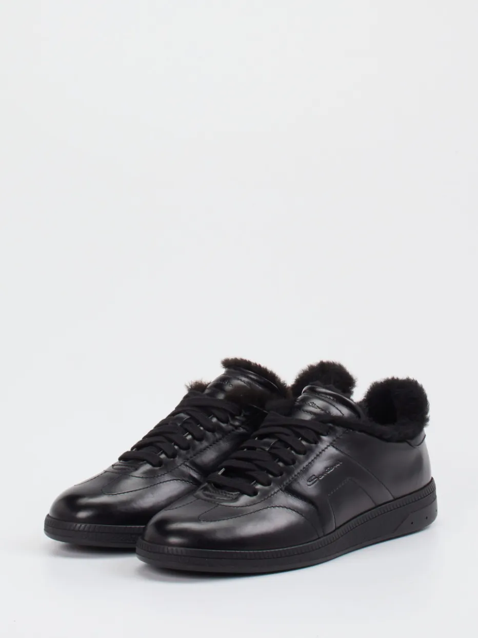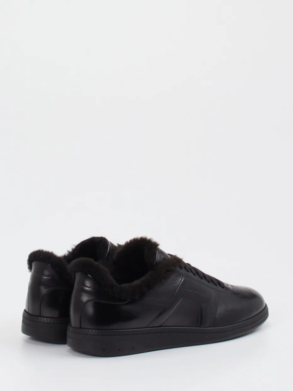 Dieser minimalistische Sneaker von Santoni kombiniert edles Kalbleder mit wärmendem Lammfellfutter – ideal für stilbewusste Herren an kühleren Tagen.
