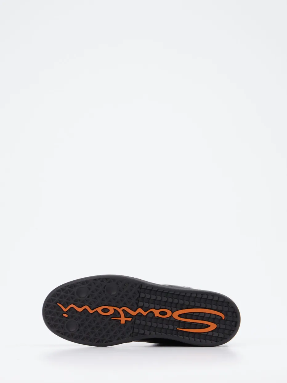 Understatement trifft Winterkomfort.Der Sneaker von Santoni für Herren vereint sportliche Klassik mit luxuriösem Understatement. Für kühle Alltagsmomente im urbanen Umfeld bietet dieser Low-Top-Sneaker perfekten Komfort. Gefertigt aus schwarzem Kalbleder mit glänzender Oberfläche und tonalen Nähten, ergänzt ein weiches Innenfutter aus echtem Lammfell in tiefem Schwarz die edle Optik. Eine robuste Gummisohle mit dezentem Absatz und seitliches Prägelogo akzentuieren das schmal geschnittene Design. Dank Schnürung und gepolstertem Schaftrand trägt sich der Schuh bequem und sicher. Modisch fügt er sich mühelos in den aktuellen „Quiet Luxury“-Trend ein und passt zu Casualwear mit Anspruch. Italienische Handwerkskunst trifft auf funktionalen Winterstil.