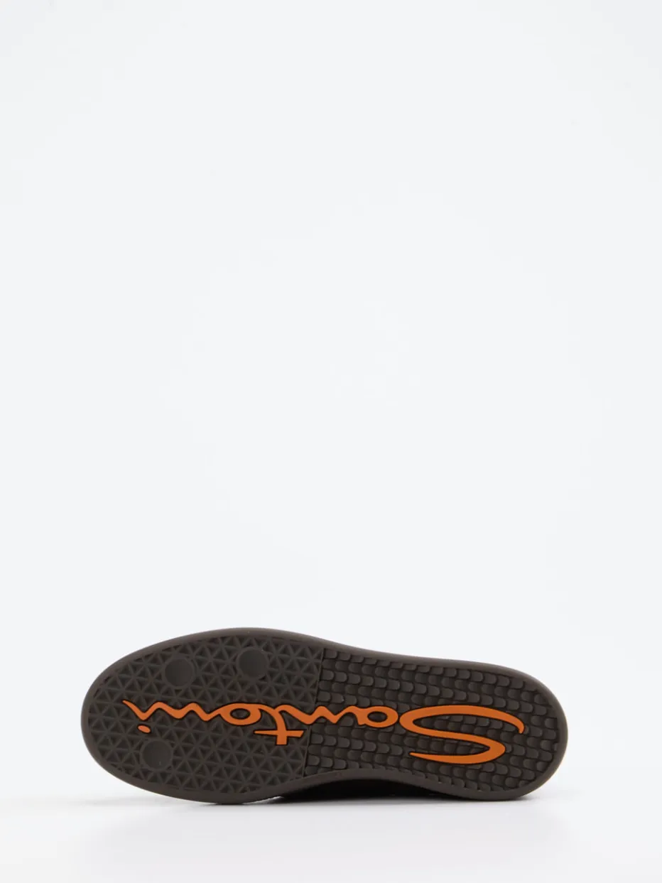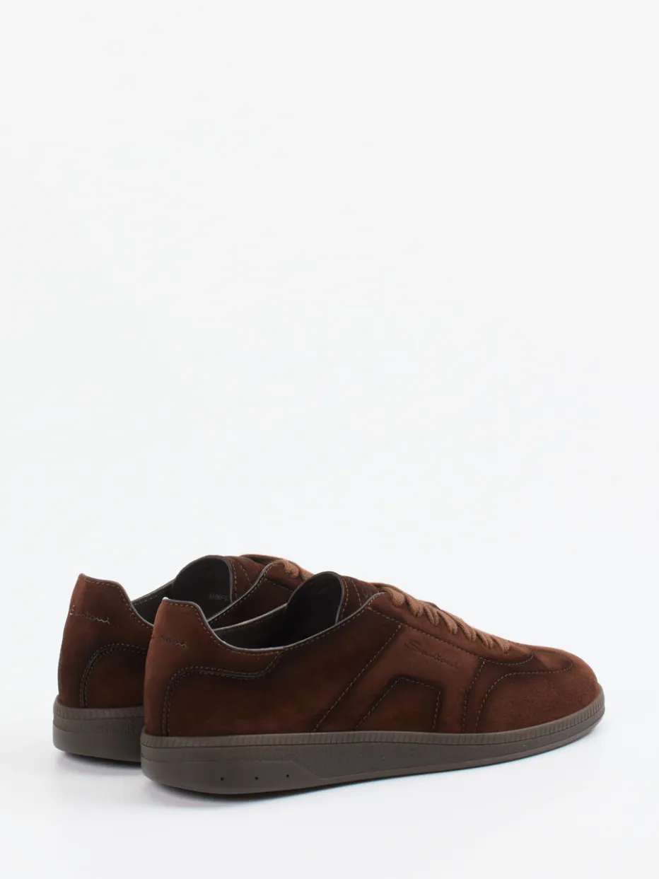 Schlichte Eleganz für urbane Komfortmomente.Der edle Herren-Sneaker von Santoni überzeugt in der Kategorie Low-Top durch formvollendetes Design und luxuriöses Material. Ideal für den dezent gepflegten Auftritt bei mildem Herbstwetter: Das schokobraune Veloursleder präsentiert sich samtig matt mit tonalen Nähten und klarer Linienführung. Die klassische Silhouette mit Schnürung wird durch eine flexible Gummisohle ergänzt, die durch ein markantes orangefarbenes Branding auffällt. Retro-Sportswear-Einflüsse und die Anmutung von „Quiet Luxury“ treffen auf praktischen Komfort – inklusive herausnehmbarem Memory Foam-Fußbett. Perfekt in Kombination mit Chinohose und Kaschmirpullover. Ein Saison-Basic, das italienisches Feingefühl und hochwertigen Tragekomfort verbindet.