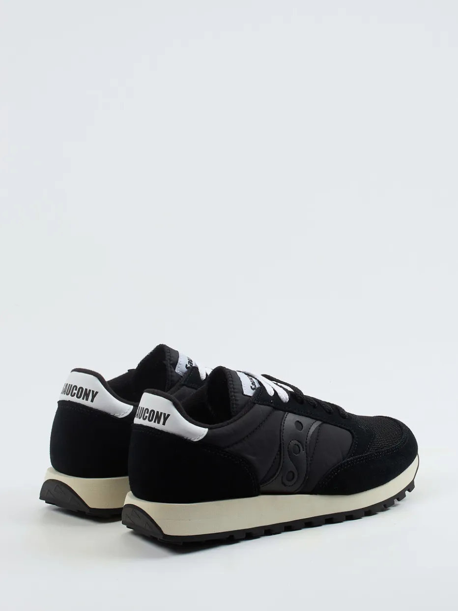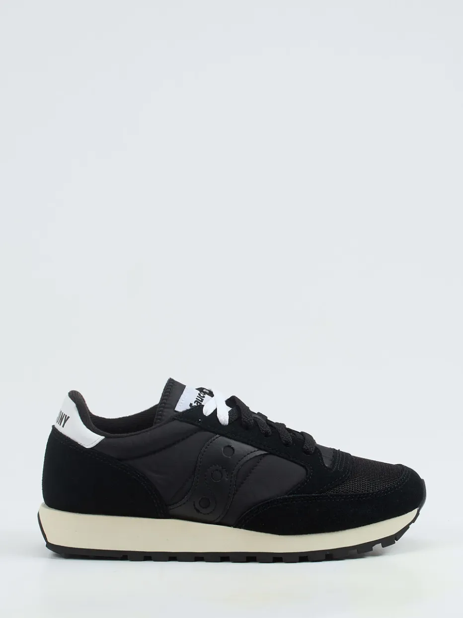 Trendige Silhouette mit Retro-Faktor.Saucony bringt mit diesem Sneaker im Running-Stil ein sportlich-lässiges Unisex-Modell auf den Markt. Inspiriert vom 90er-Vintage-Look verbindet der Retro-Sneaker schwarzes Crostaleder sowie samtig angeschliffenes Veloursleder mit atmungsaktivem Hightech-Mesh und Nylon. Die flach-schmale Form in Uni-Schwarz wird durch weiße Logopatches, zweifarbige Schnürung und eine beige Gummisohle akzentuiert. Die stark profilierte Laufsohle sorgt für festen Grip im Freizeitbereich oder bei leichter Bewegung. Der Look passt besonders gut zu Jogpants oder Oversized Hoodies. Geradliniges Streetwear-Design mit maximalem Alltagskomfort.