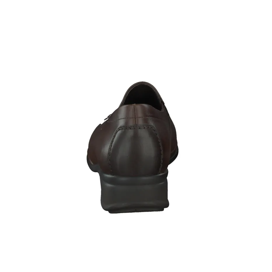 Stilsicher durch den Tag.Die Marke Semler präsentiert einen Komfort-Slipper für Damen in Weite H. Ob für den täglichen Weg ins Büro oder entspannte Stunden im Café – dieser Slipper bietet hohen Gehkomfort bei klassisch-minimalistischem Stil. Gefertigt ist das Modell aus hochwertigem Kalbleder, matt verarbeitet und in einem tiefen Dunkelbraun gehalten. Elastikeinsätze beidseitig erleichtern den Einstieg und sorgen für eine flexible Passform. Die profilierte PU-Sohle mit Keilansatz ist rutschhemmend und unterstützt einen sicheren Tritt. Zeitlose Linien, Ton-in-Ton-Nähte und eine leicht abgesetzte Zehenpartie unterstreichen die minimalistische Formensprache. Besonders stilvoll in Kombination mit Stoffhose und Lederhandtasche. Ein bequemer Allrounder von Semler mit souveräner Eleganz und handwerklicher Detailtreue.