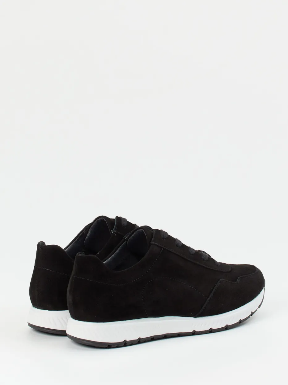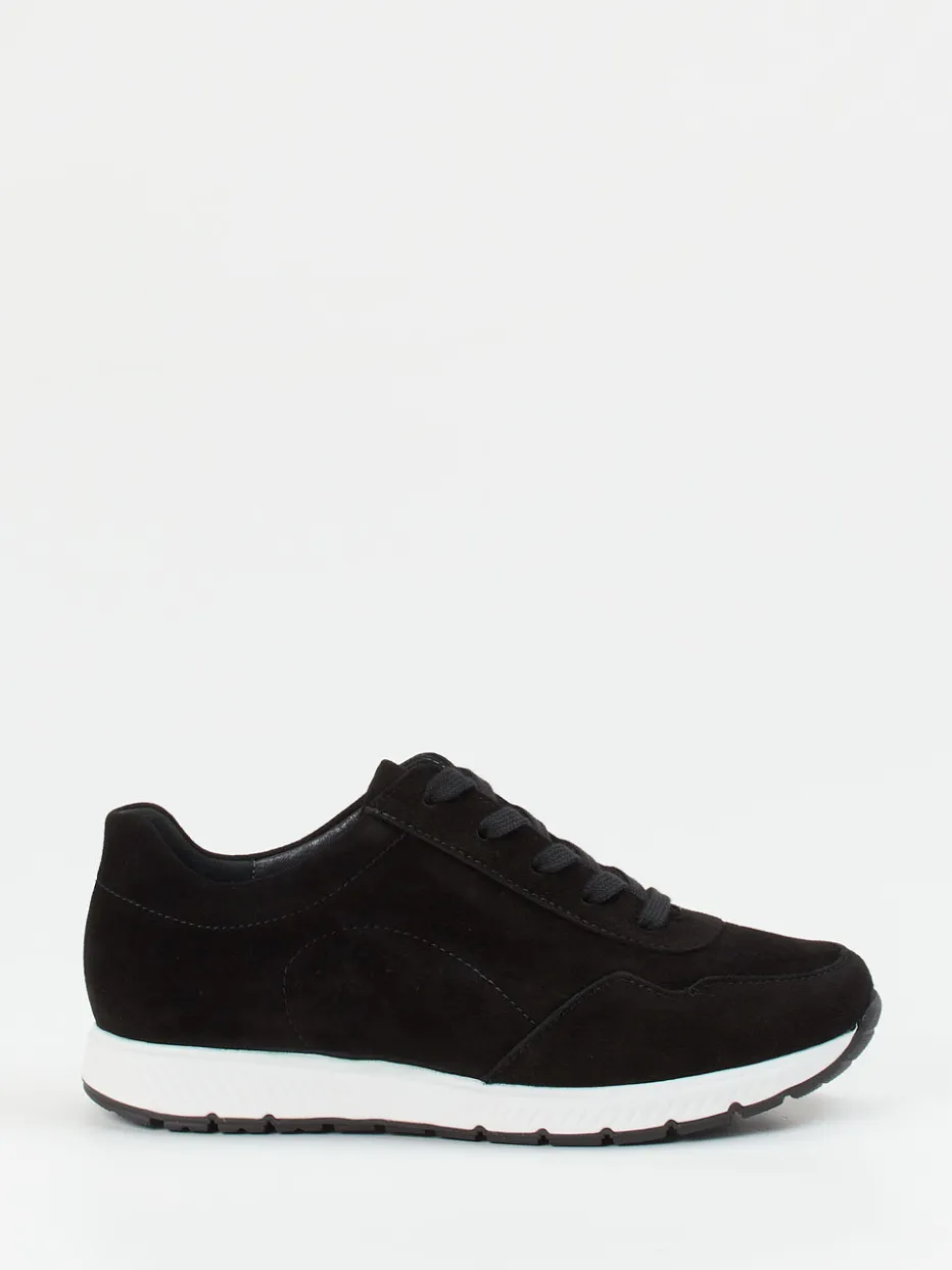 Minimalistischer Stil in Bewegung.Semler präsentiert mit diesem Komfort-Sneaker ein angenehm flexibles Modell für Frauen mit Stilanspruch. Ob für entspannte Freizeitaktivitäten oder den täglichen Weg, dieser schwarz gehaltene Sneaker mit klassisch-sportlicher Silhouette bietet mit dem gepolsterten Schaftrand und atmungsaktivem Leder-Textilfutter besonderen Komfort. Stretch- mit samtig angeschliffenem Veloursleder sorgt dabei für einen weichen Sitz, während die weiße Zwischensohle optisch Leichtigkeit verleiht. Das austauschbare Fußbett, die rutschhemmende Gummisohle und die dezente Ton-in-Ton-Schnürung unterstreichen den funktionalen Charakter. Ideal kombinierbar mit Basics wie Jeans oder Steppjacke. Komfort und Qualität in ausgewogenem Design – ganz im Sinne der Linie von Semler.