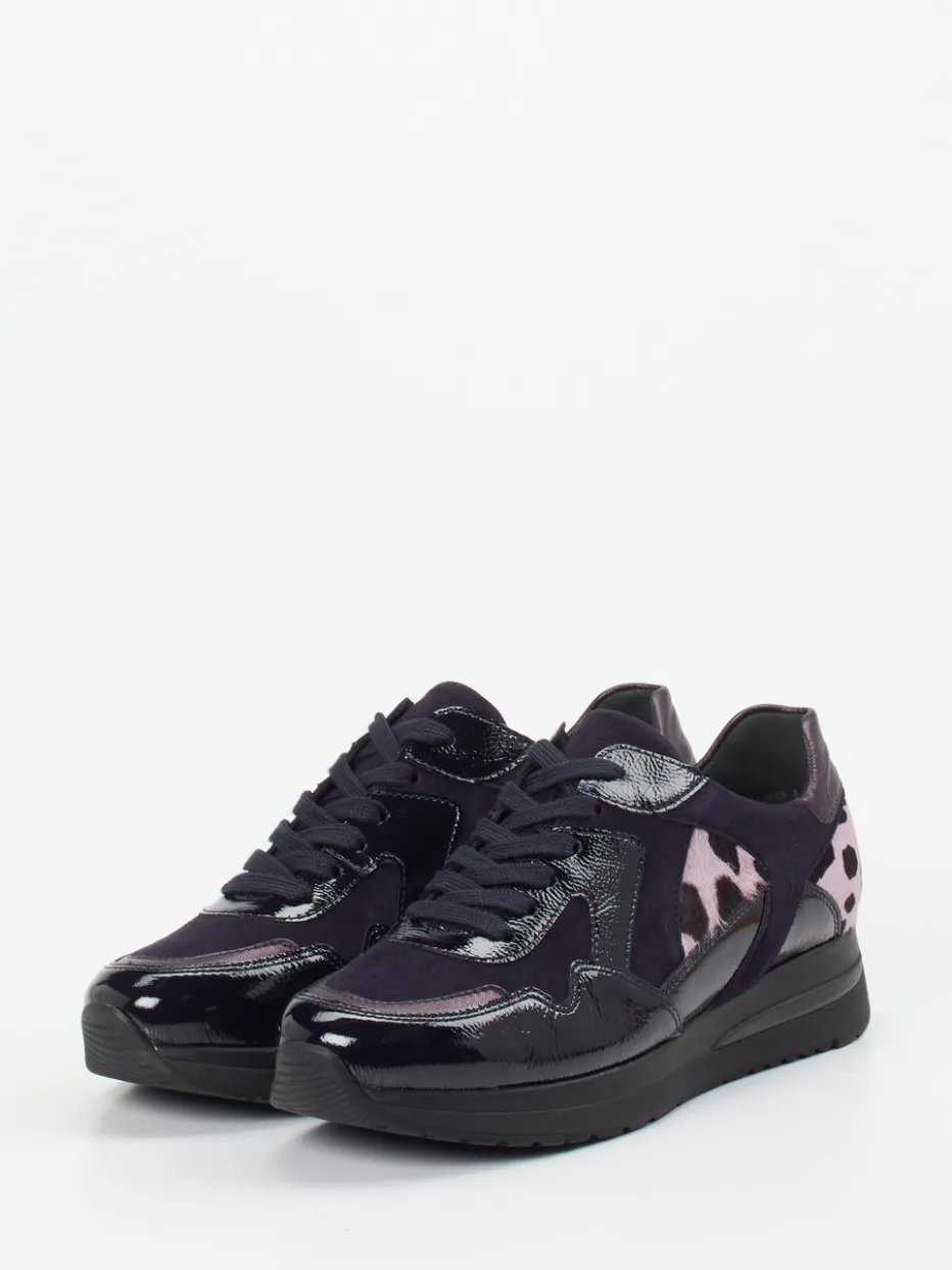 Semler kombiniert samtiges Veloursleder mit glänzenden Lackelementen und einem Animalprint in Rosé – ein stilvoller Sneaker für trendorientierte Anspruchsträgerinnen.
