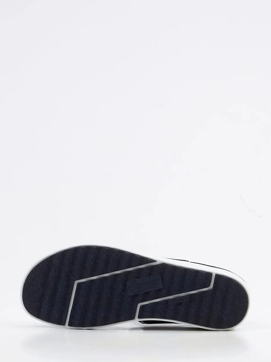 Diese Komfortsandale von Semler verbindet hochwertige Verarbeitung mit zeitlosem Design. Ideal für entspannte Freizeitmomente oder den Alltag rund um Haus und Stadt bietet das Modell dank Veloursleder mit samtiger Oberfläche und der Weite H einen exzellenten Tragekomfort. Die dominante Farbe Dunkelblau wird durch silberfarbene Details und eine weiße PU-Luftpolstersohle stilvoll ergänzt. Zwei Klettverschlüsse und ein verstellbarer Fersenriemen unterstützen eine individuelle Passform. Das ergonomisch geformte Fußbett ist austauschbar – perfekt für Einlagen. Inspiriert vom Soft-Utility-Trend wirkt das Design modern und funktional zugleich. Semler steht für spürbaren Komfort mit modischer Zurückhaltung.