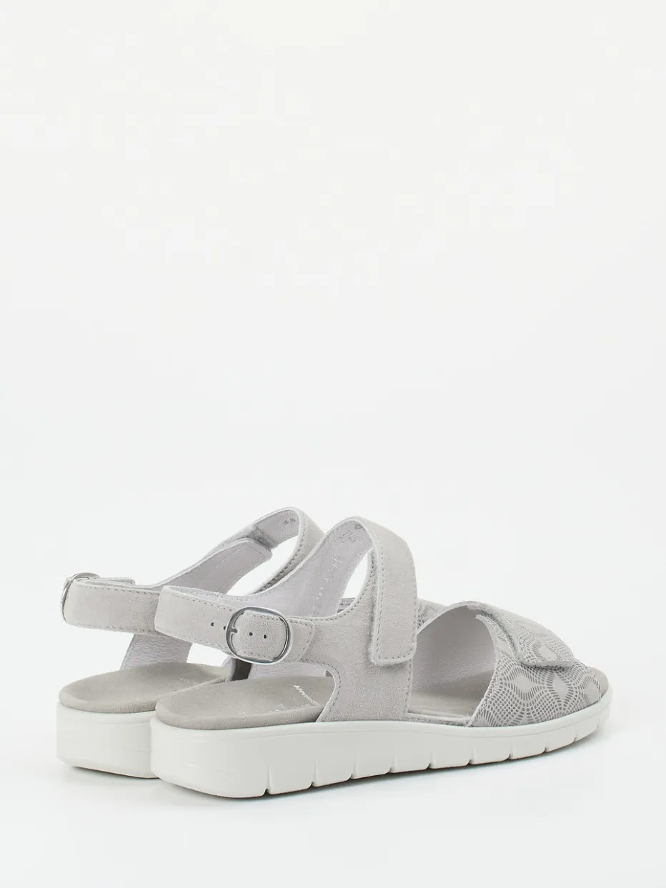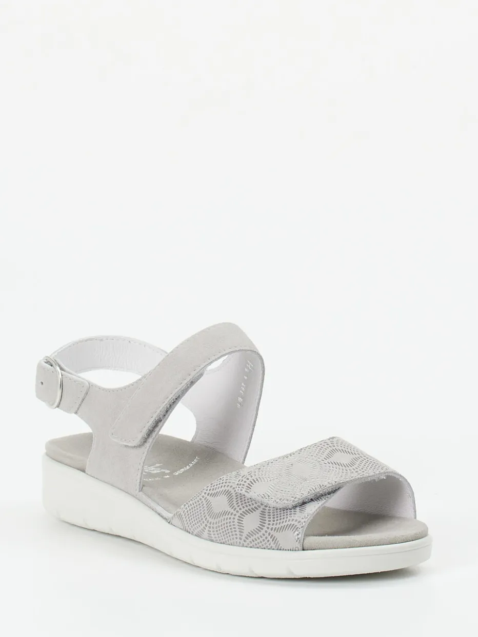 Komfort auf Schritt und Tritt.Die Marke Semler bringt mit dieser Komfortsandale ein Modell für Damen auf den Markt, das Alltagstauglichkeit und hochwertiges Design elegant verbindet. Ob beim Stadtbummel oder auf der Terrasse – das hellgraue Veloursleder, samtig angeschliffen, trifft auf atmungsaktives Textilmesh mit filigraner, floraler Struktur. Die offene, ergonomisch geformte Silhouette harmoniert mit dem dezenten Keil der weißen PU-Luftpolstersohle. Dank individuell justierbarer Klettverschlüsse und verstellbarem Fersenriemen mit silberfarbener Schnalle lässt sich der Sitz präzise anpassen. Das gepolsterte, wechselbare Fußbett eignet sich optimal für Einlagen und unterstreicht den funktionalen Komfortstil. Kombinationsfreundlich zu Leinenblusen oder hellen Sommerhosen. Ganzheitlich bequem mit bewegungsfreundlicher Eleganz – typisch Semler.