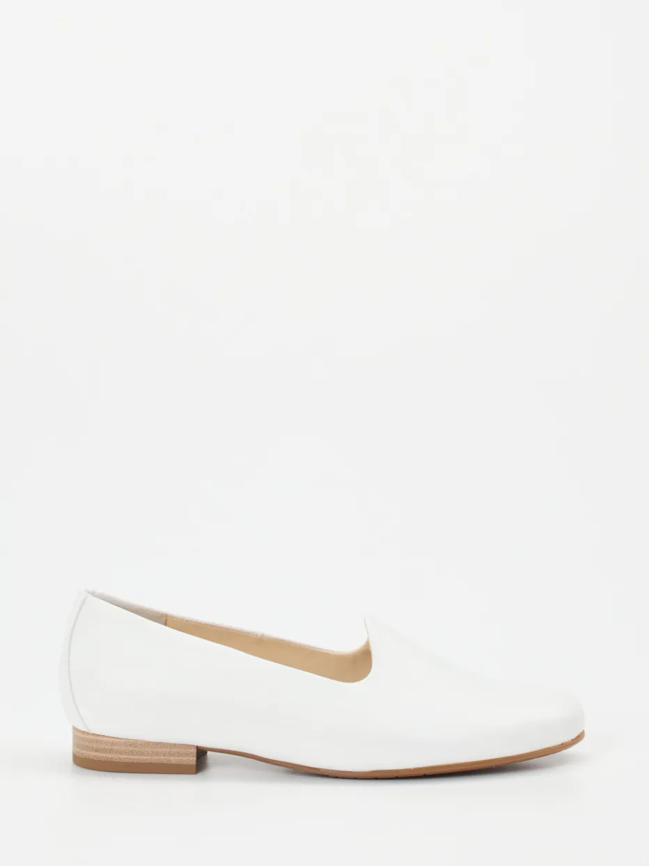 Der Loafer von Semler bietet klassische Eleganz für Damen mit einem Gespür für Understatement. Das schneeweiße Kalbleder mit matter Oberfläche verleiht dem Modell eine cleane Optik. Die flache, feminine Silhouette mit schlupffreundlichem Einstieg, naturfarbenem Blockabsatz und Ton-in-Ton-Nähten unterstreicht den minimalistischen Stil. Innen sorgen Softlederfutter und ein gepolstertes Wechselfußbett für angenehmen Tragekomfort – auch für eigene Einlagen geeignet. Mit Anklängen an „Quiet Luxury“ passt der Schuh in gepflegte Freizeitoutfits und dezente Business-Garderoben. Zu Trenchcoat und Lederhandtasche entsteht ein harmonischer Look. Komfort und Design im Gleichgewicht – dafür steht Semlers Anspruch an moderne Bequemschuhe.