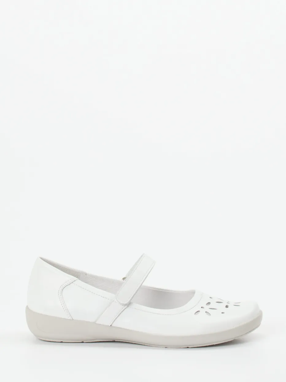 Sommerlicher Komfort in stilvoller Leichtigkeit.Semler präsentiert komfortorientierte Mary Jane Ballerinas für die warme Saison. Ideal für entspannte Tage in der Stadt oder zu Hause: Das weiße Kalbleder ist samtglänzend verarbeitet und zeigt ein präzises, florales Cut-out-Muster. Der Klettverschluss-Riemen sorgt für individuelle Passform, während die angenehme H-Weite und das herausnehmbare Fußbett den Tragekomfort erhöhen – auch für Einlagenträgerinnen. Die flexible PU-Luftpolstersohle unterstützt eine softe Auftrittsdämpfung. In Formen und Farben steht das Paar ganz im Zeichen von Soft Comfort und Minimalismus. Zeitlos bequemer Chic mit handwerklicher Sorgfalt – typisch Semler.