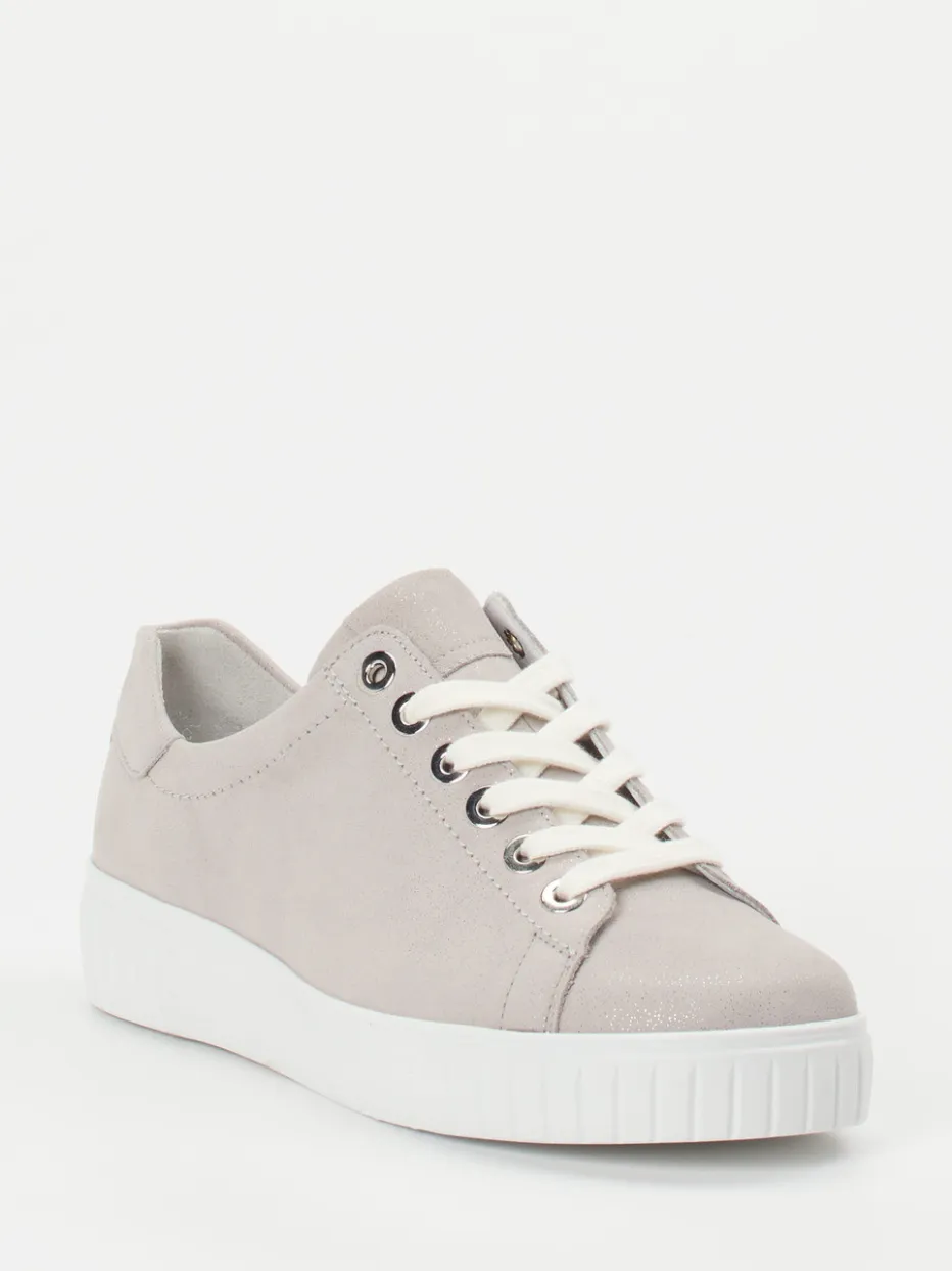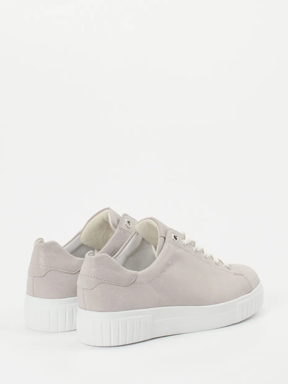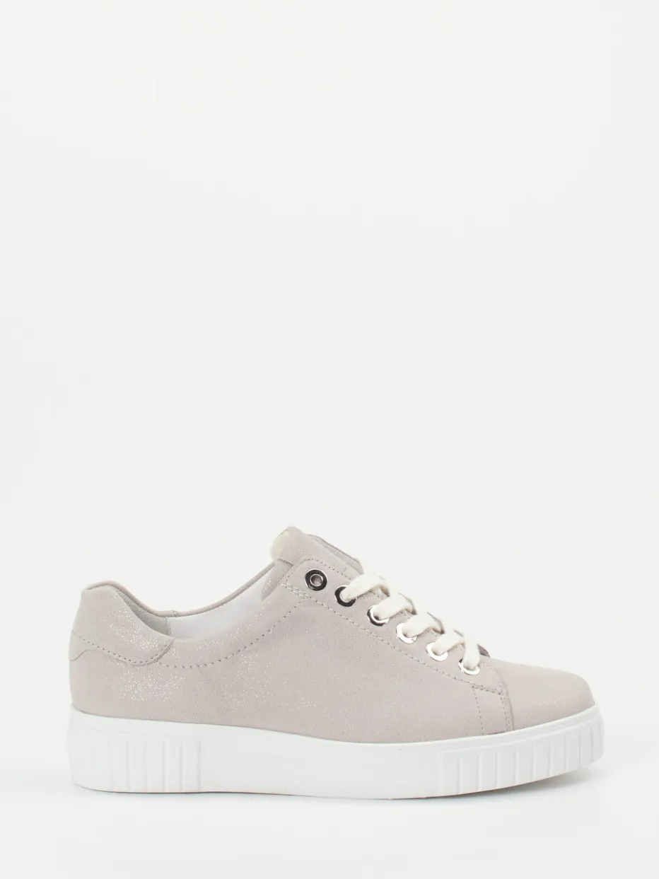 Eleganz trifft Komfort im Alltag.Die Marke Semler präsentiert mit diesem Damen-Plateau-Sneaker ein stilvolles Modell für entspannte Tage. Ob beim Stadtbummel oder zuhause – das graue Metallicleder mit samtigem Finish und dezentem Glitzereffekt sorgt für einen femininen Look mit zurückhaltendem Glanz. Die bequeme PU-Luftpolstersohle ist angenehm leicht und bietet durch ihr markantes Profil zuverlässigen Halt. Die klassische Silhouette mit Schnürung und silberfarbenen Ösen unterstreicht den cleanen Minimalismus-Trend. Das herausnehmbare, weich gepolsterte Fußbett ist ideal für Einlagen geeignet. Semler-typischer Komfort trifft modernes Design mit subtiler Raffinesse.