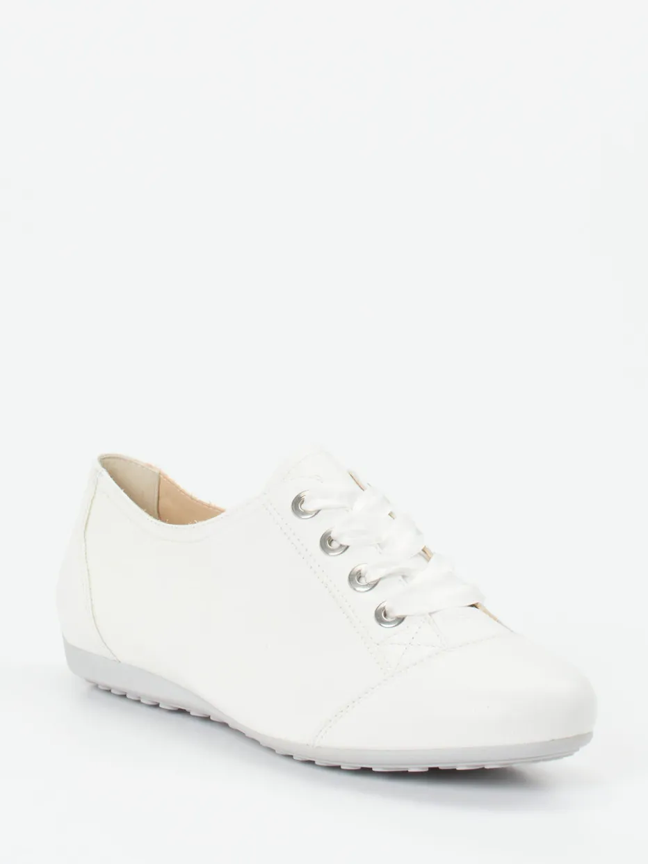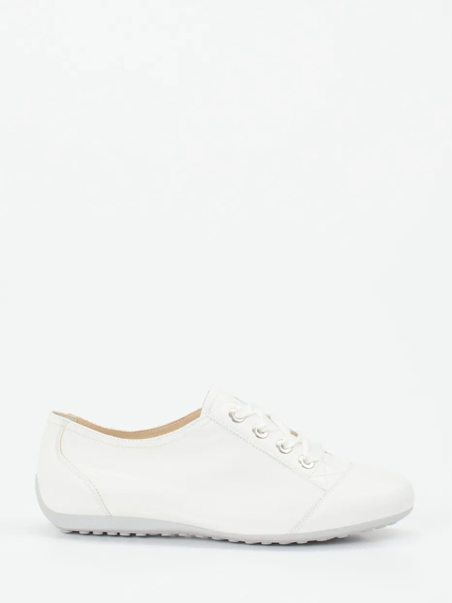Schlichtes Design mit Komfortplus.Semler präsentiert mit diesem Damen-Schnürschuh ein Modell der Komfortklasse. Für entspannte Spaziergänge oder lange Tage unterwegs bietet der Sneaker aus genarbtem Kalbleder eine ideale Kombination aus Stil und Funktion. In klarem Weiß mit rund zulaufender Silhouette, weich gepolsterter Ferse und breiten Satin-Schnürsenkeln passt er zum modernen „Quiet Luxury“-Trend. Die profilierte Gummisohle mit integriertem Luftpolster sorgt für rutschhemmenden Halt, während das herausnehmbare Vario-Fußbett Platz für eigene Einlagen bietet. Für komfortbewusste Casual-Outfits mit hochwertiger Note.