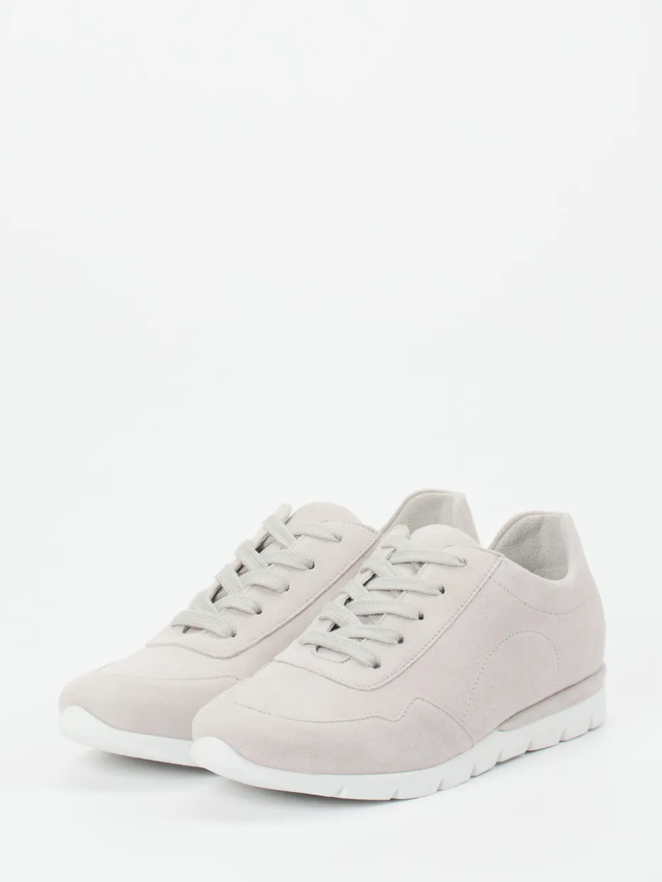 Minimalistisch. Komfortabel. Alltagstauglich.Semler präsentiert seinen bequemen Damen-Schnürschuh in dezentem Hellgrau für entspannte Freizeitkombinationen. Die weiche Haptik des hochwertigen Veloursleders trifft hier auf ein klares Design mit tonalen Nähten, abgerundeter Silhouette und einer weißen PU-Sohle mit Luftpolsterdämpfung. Praktische Details wie ein gepolsterter Einstieg sowie das angenehm weiche Innenfutter aus Leder und Textil sorgen für maximalen Komfort. Die klassische Schnürung und das schmale Gesamtbild machen den Schuh zum idealen Partner für Soft-Neutrals-Outfits oder moderne Casualwear. Besonders passend zu hellen Baumwollhosen oder einer Taupefarbenen Crossbody-Bag. Ein Essential für stilbewusste Minimalistinnen mit Fokus auf Komfort.