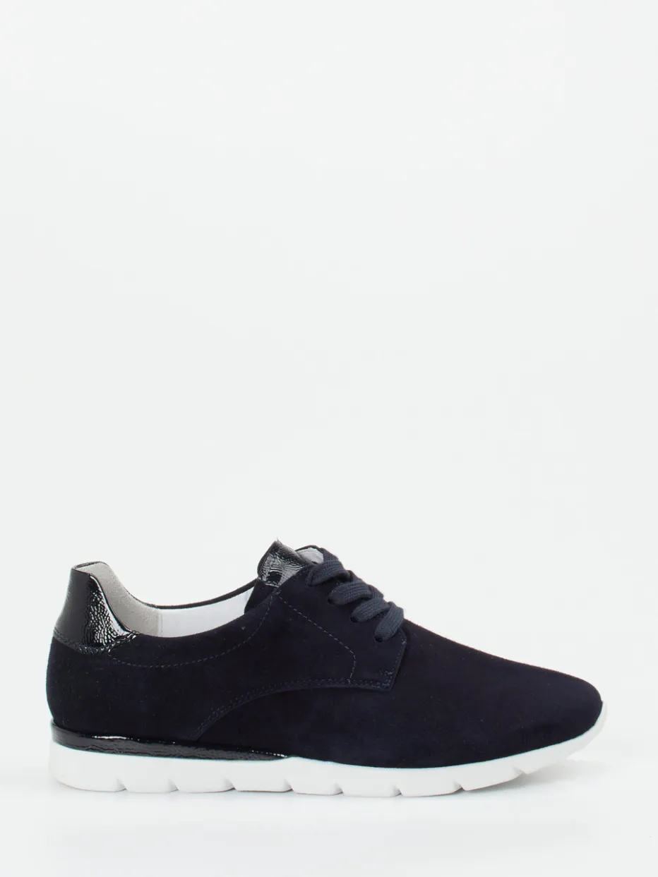 Stilsicher durch den Alltag.Der Semler Schnürschuh für Damen verbindet Casual-Komfort mit eleganter Zurückhaltung. Für Tage, an denen ganztägiger Komfort gefragt ist, bietet das Modell aus dunkelblauem Veloursleder mit samtiger Oberfläche und schwarzen Lackdetails an Ferse und Zunge ein visuelles Highlight. Die leichte, flexible PU-Sohle mit Luftpolster in Weiß sorgt für Dämpfung und unterstreicht mit dem schwarzen Kontraststreifen den modernen Materialmix. Die runde Silhouette, die dezente Schnürung und das weiche Leder-Textilfutter komplettieren den harmonischen Look. Inspiriert von Streetwear und den Trends „Quiet Luxury“ sowie „Materialkontraste AW24“, passt dieser Sneaker ideal zu minimalistischen Styles – von feiner Stoffhose bis zur Crossbody-Bag. Alltagsfreundliches Design trifft auf die bewährte Semler-Komfortqualität.