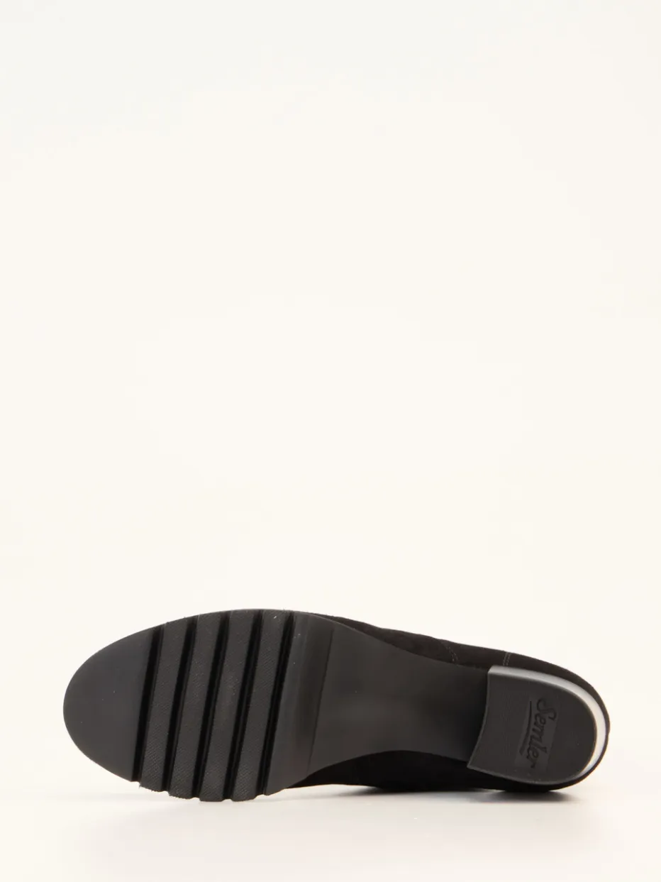 Stilvoll durch Alltag und Büro.Die Marke Semler präsentiert diese Damen-Schnürstiefelette als stilvolle Begleiterin für urbane Tage. Samtig mattes Veloursleder in Schwarz sorgt für eine elegante Optik, die durch tonige Nähte und eine schmal zulaufende, knöchelhohe Silhouette ergänzt wird. Ein seitlicher Reißverschluss erleichtert das Anziehen, während eine Schnürung eine individuelle Passform bietet. Die profilierte Gummisohle mit 5 cm hohem Blockabsatz wirkt trittsicher – perfekt für Business- und Freizeit-Looks. Minimalistische Utility-Details bringen moderne Funktionalität in Einklang mit saisonalem Chunky-Trend. Ein H-Weiten-Komfortschuh mit herausnehmbarem Fußbett für anspruchsvolle Füße.