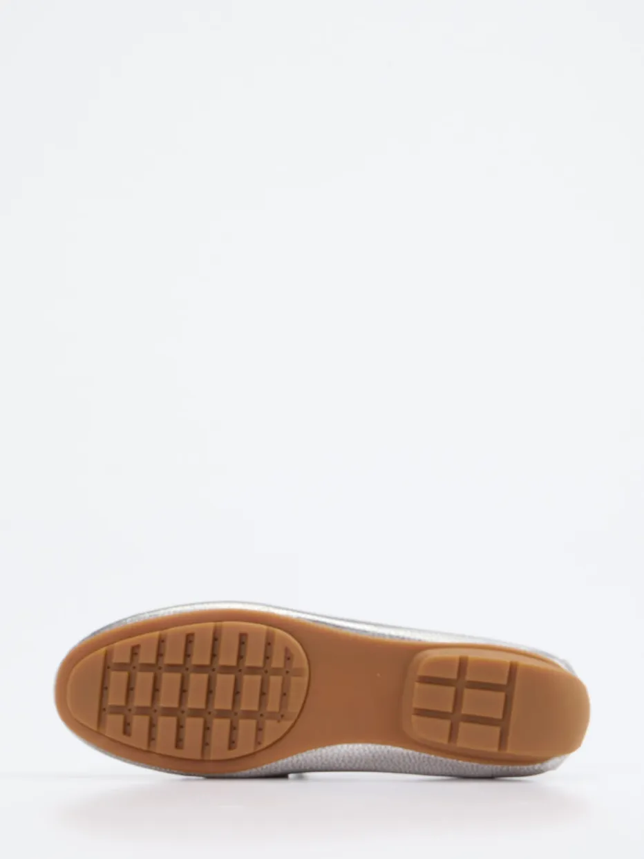 Stilvoll durch den Alltag.Der Damen-Slipper von Si vereint klassische Loafer-Silhouette mit einem modernen Metallic-Finish. Ideal für Meetings, Büro oder Lunch-Dates: Der Penny Loafer aus genarbtem, silberfarbenem Kalbleder überzeugt mit charakterstarker Oberfläche und Ton-in-Ton-Nähten als edles Detail. Die vernähte Mokassin-Naht und die charakteristische Zunge mit Penny-Slot unterstreichen den Vintage-inspirierten Look. Eine robuste, rutschfeste Gummisohle in Terrakotta ergänzt Funktion und Tragekomfort. Das pastellrosafarbene Lammnappa-Innenfutter sorgt für ein angenehm weiches Tragegefühl. Stilistisch greift das Modell den „Quiet Luxury“-Trend ebenso auf wie die saisonale Vorliebe für Metallics. Modischer Komfort mit Retro-Charme vom Qualitätshaus Si.