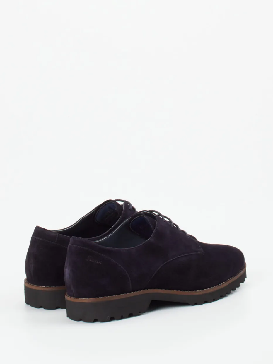 Perfekt für Büro und Alltag: Das geschmeidige Veloursleder mit samtiger Oberfläche trifft auf einen klassischen, flachen Schnitt in edlem Dunkelviolett. Die porosierte Gummisohle mit Profil sorgt für sicheren Tritt, auch bei nasser Witterung. Designfeatures wie 5-Loch-Schnürung und Ton-in-Ton-Nähte stärken den ruhigen Gesamteindruck im Sinne von „Quiet Luxury“. Dank Weite H und gepolstertem Wechselfußbett eignet sich das Modell auch für Einlagen. Kombiniert mit Strick oder feiner Wolle entsteht ein harmonischer Herbststil.