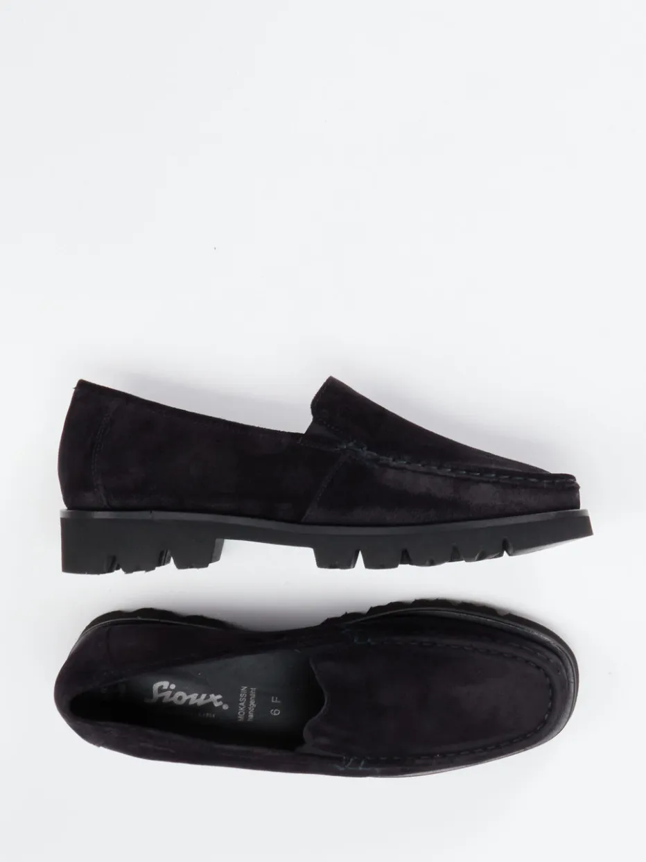 Damen Sioux – Loafer aus Veloursleder in Tiefschwarz