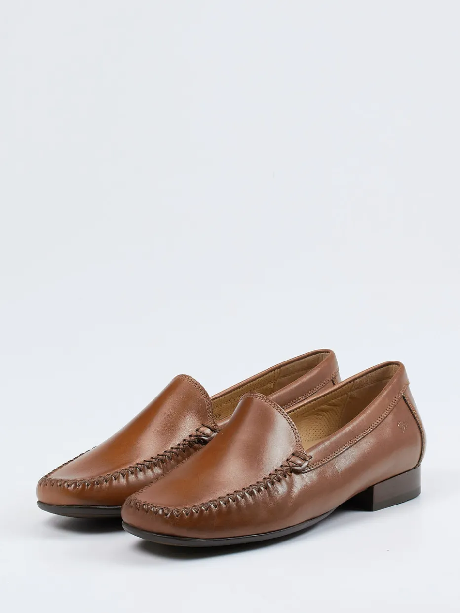 Klassik und Komfort in schöner Harmonie.Die Marke Sioux präsentiert einen Damenmokassin, der klassische Silhouette und gepflegten Stil vereint. Ob im Büro oder in der City: Das cognacfarbene Kalbleder mit glatter, leicht glänzender Oberfläche sorgt für einen eleganten Auftritt. Handgenähte Mokassinnähte und eine dezente Loaferlasche unterstreichen die klassische Form. Die gepolsterte Innensohle, das Lederfutter und die rutschhemmende Gummisohle bieten angenehmen Komfort. Der Look passt zu Preppy-Styles ebenso wie zu dezenten Casual-Outfits. Ein Schuh mit Stilgefühl – komfortabel und gepflegt zugleich, ganz im Sinne der Sioux-Handwerkskunst.