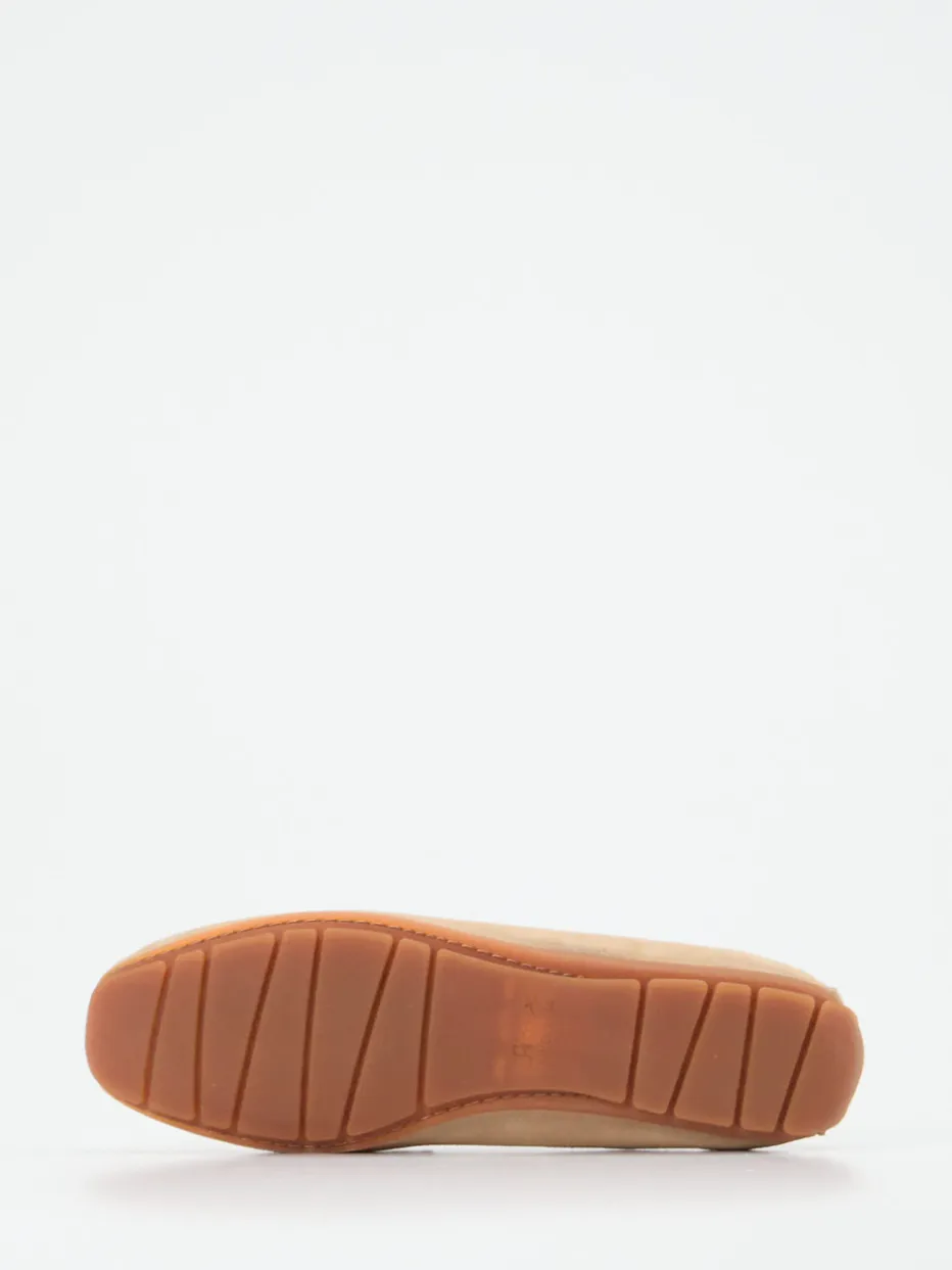 Leichtfüßiger Chic im Preppy-Stil.Die Marke Sioux präsentiert mit diesem Damen-Mokassin einen vielseitigen Slipper für Alltag und Büro. Beigefarbenes Veloursleder mit samtiger Oberfläche, kombiniert mit hellen Kontrastnähten und einer klassischen Schlupfform, verleiht dem Modell einen zeitlosen Ausdruck. Die flache Silhouette, das eingeprägte Logo an der Ferse sowie das herausnehmbare Fußbett und die profilierte Gummisohle setzen stilistische wie funktionale Akzente. Inspiriert vom „Quiet Luxury“-Trend lässt sich das Design ideal zu Casual-Blusen und hellen Stoffhosen kombinieren. Höchster Komfort trifft dezente Eleganz – typisch Sioux.
