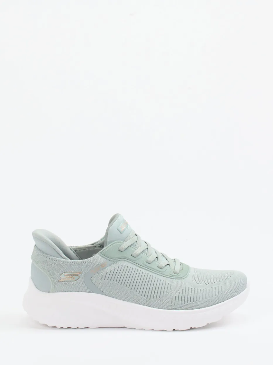 Sportlicher Komfort in Pastelltönen.Skechers präsentiert mit diesem Slip-On-Sneaker eine moderne Damenwahl für Alltag und Aktivität. Ideal für den Weg ins Fitnessstudio oder entspannte Alltagswege: Das fein strukturierte Meshtextil in zartem Pastellgrün bietet atmungsaktive Leichtigkeit. Die elastische Schnürung und ein gepolsterter Schaftrand erleichtern den Einstieg und verbessern den Halt. Eine ultraleichte Gummilaufsohle sorgt für sanftes Abrollen, während das atmungsaktive Memory-Foam-Fußbett ganztägigen Komfort garantiert. Dezente Ton-in-Ton-Nähte und ein metallicfarbenes Markenlogo betonen die minimalistische Ästhetik. Die Silhouette greift den aktuellen Athleisure-Trend auf und harmoniert perfekt mit Pastell-Trainingshosen oder leichten Freizeitoutfits. Ein femininer Allrounder mit funktionalem Anspruch von Skechers.
