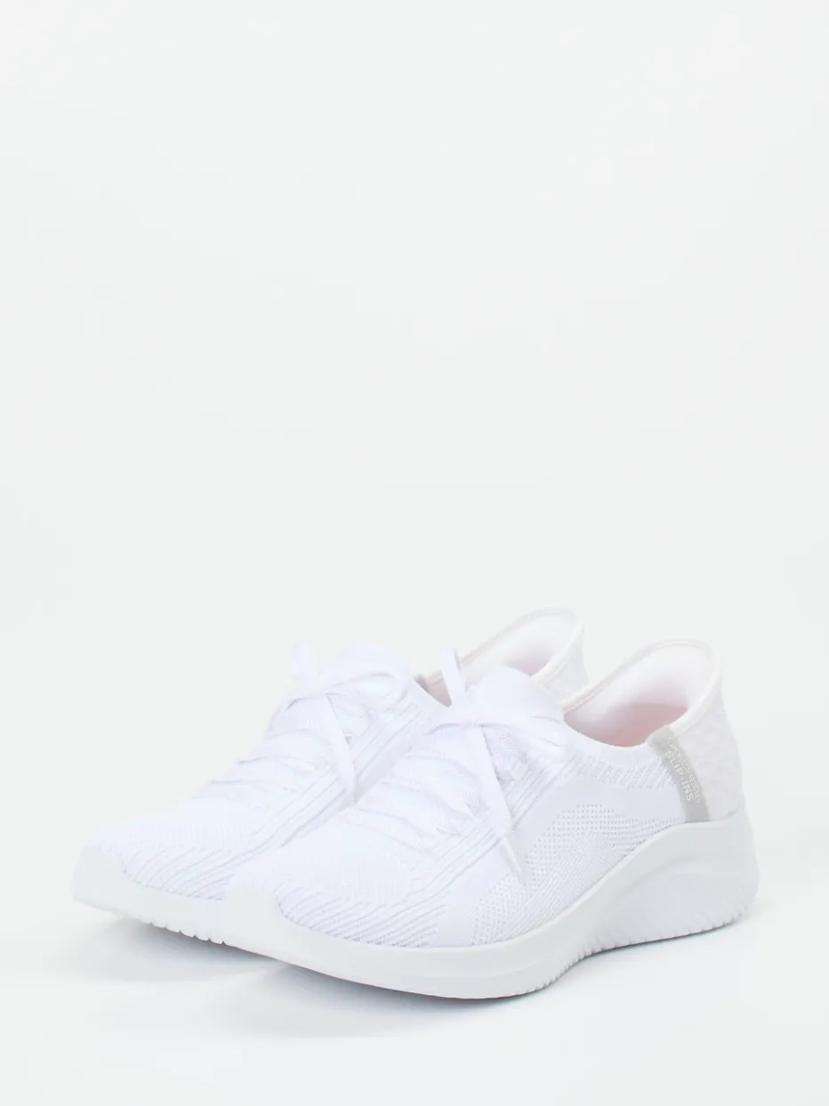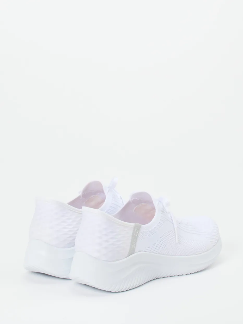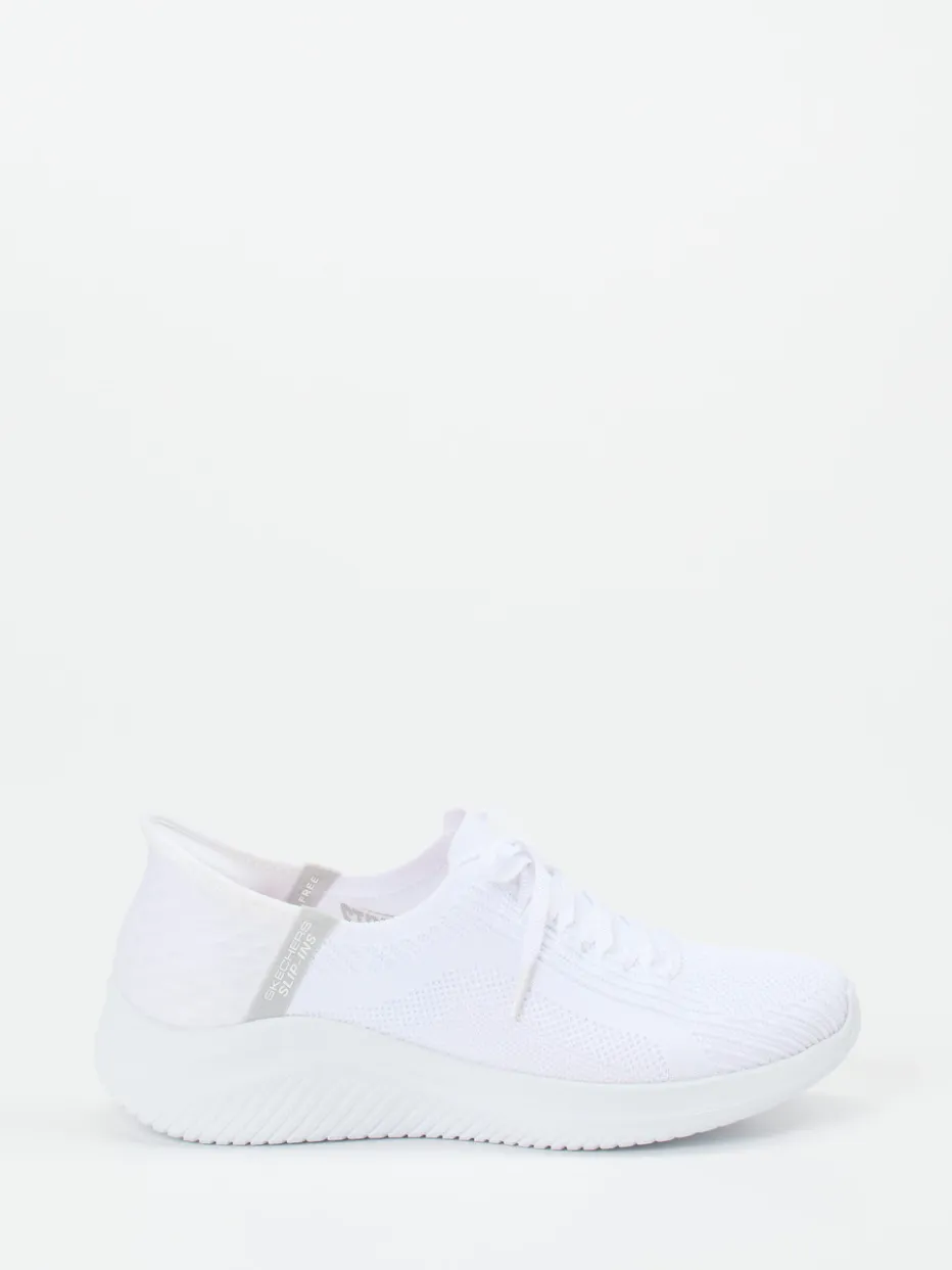 Die Marke Skechers präsentiert einen leichten Damen-Sneaker aus gestricktem Textil.