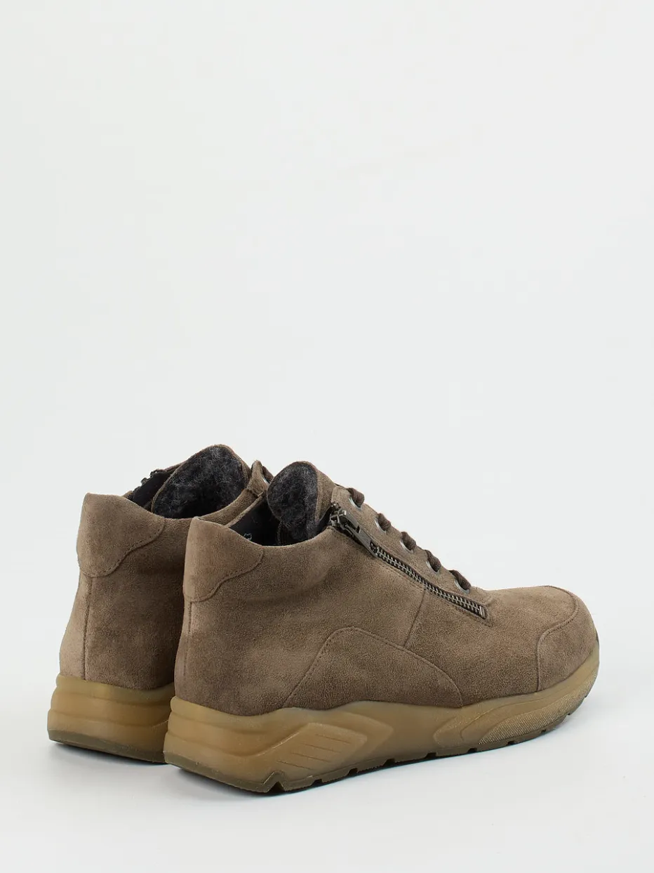 Ob beim Spaziergang oder Stadtbummel – das weiche Veloursleder in taupefarbenem Braun liegt angenehm am Fuß und harmoniert mit der schlichten Silhouette. Ein seitlicher Reißverschluss erleichtert das Anziehen, während das wärmende Wollfutter für Behaglichkeit sorgt. Die profilierte Gummisohle federt Schritte effektiv ab und gibt rutschfesten Halt. Die Weite K und das ergonomische, austauschbare Korkfußbett bieten zusätzlichen Komfort – perfekt für anspruchsvolle Füße. Dezente Ton-in-Ton-Nähte und Metallakzente akzentuieren den Clean-Look.