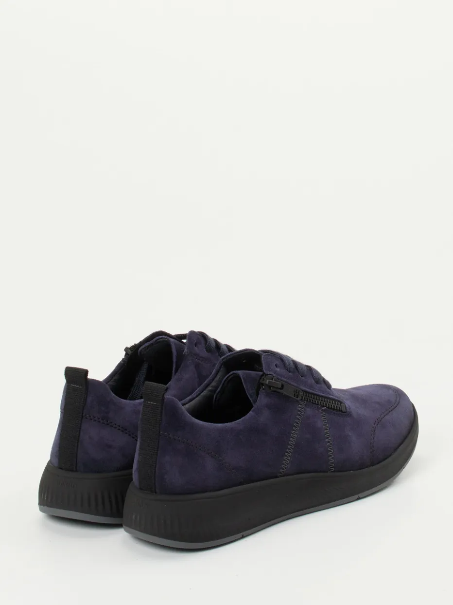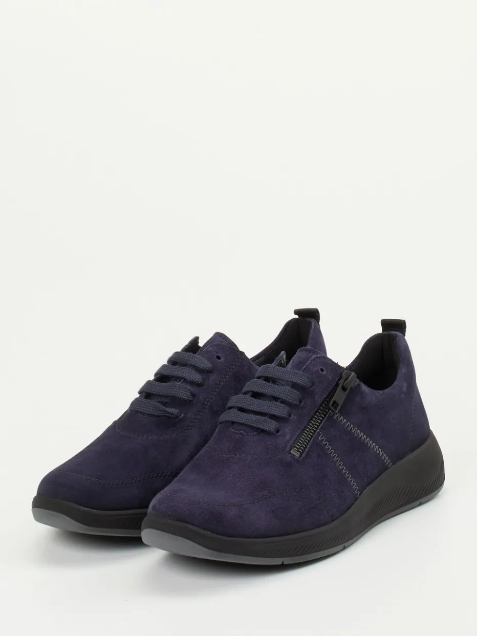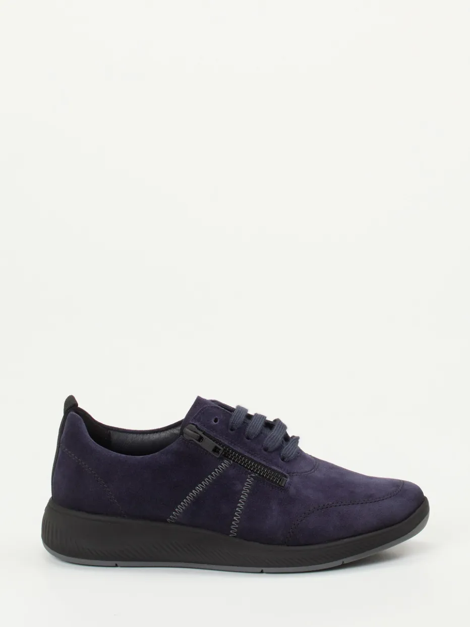 Vielseitiger Komfort in sportlicher Eleganz.Solidus präsentiert mit diesem Damen-Komfortsneaker ein modernes Modell für Freizeit und Alltag. Ob für entspannte Spaziergänge oder lange Tage unterwegs – das samtig angeschliffene Veloursleder sorgt nicht nur für eine edle Optik, sondern auch für ein angenehm sanftes Tragegefühl. Das dunkelblaue Obermaterial wird von Ton-in-Ton-Nähten stilvoll strukturiert, während ein seitlicher Reißverschluss das Anziehen erleichtert. Die rund-sportliche Silhouette kombiniert mit der weichen schwarzen Sohle mit griffigem Profil steht für funktionale Streetwear. Ideal für komfortorientierte, casual Looks. Solidus verbindet Fußgesundheit mit urbaner Alltagstauglichkeit – in bewährter Weite K.
