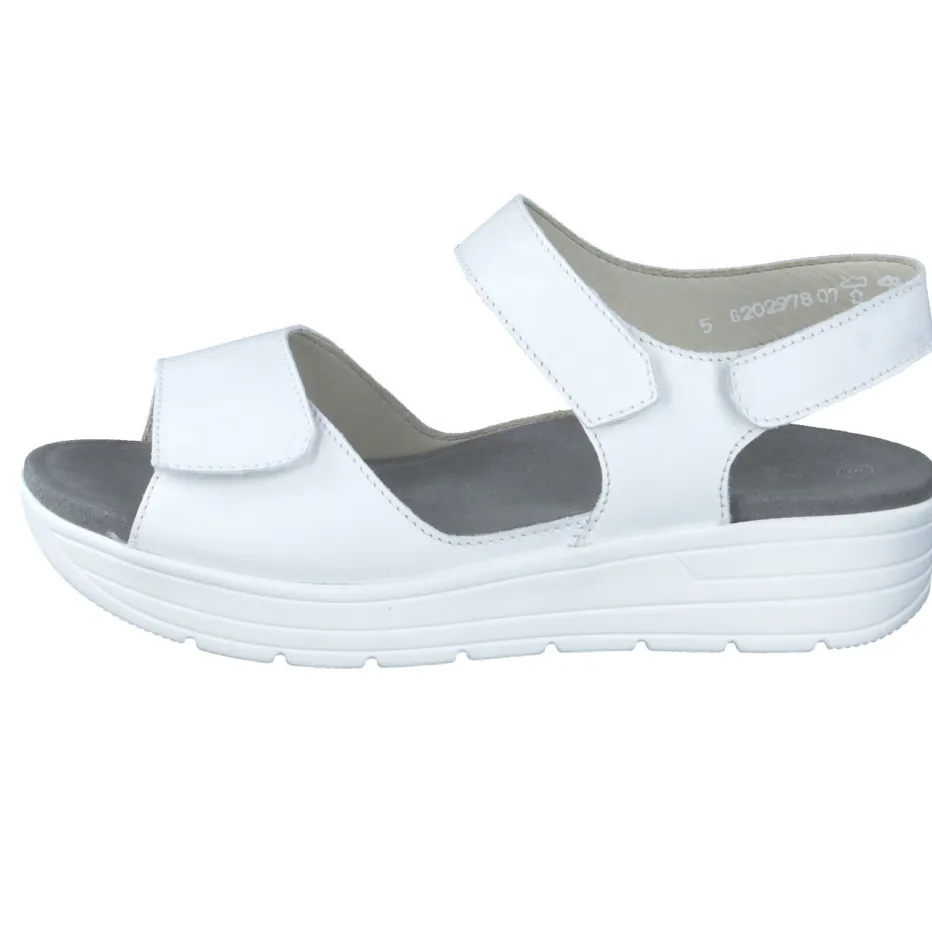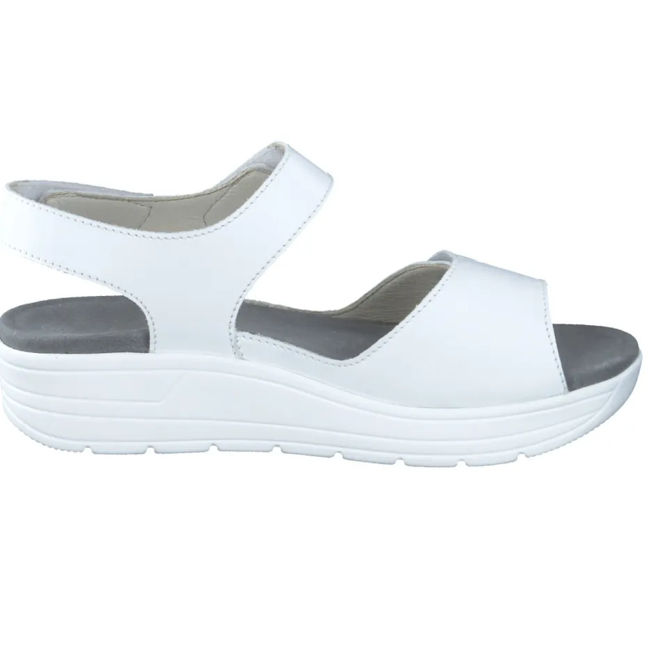 Komfort neu definiert.Solidus präsentiert eine feminine Komfortsandale, ideal für entspannte Tage in Freizeit oder Alltag. Das samtig-weiche Kalbleder in klarem Weiß sorgt zusammen mit einem ergonomisch geformten Fußbett für ein angenehmes Tragegefühl – auch bei langem Gehen. Eine profilierte, flexibel gestaltete Synthetiksohle und verstellbare Klettverschlüsse ermöglichen optimalen Halt. Die offene, ergonomisch designte Silhouette vereint Funktionalität mit minimalistischer Ästhetik. Leicht strukturierte Ton-in-Ton-Nähte setzen dezente Highlights. Als Teil aktueller „Quiet Luxury“-Trends überzeugt sie auch stilistisch. Solidus steht für anspruchsvolle Passform in Verbindung mit zeitloser Komfortästhetik.
