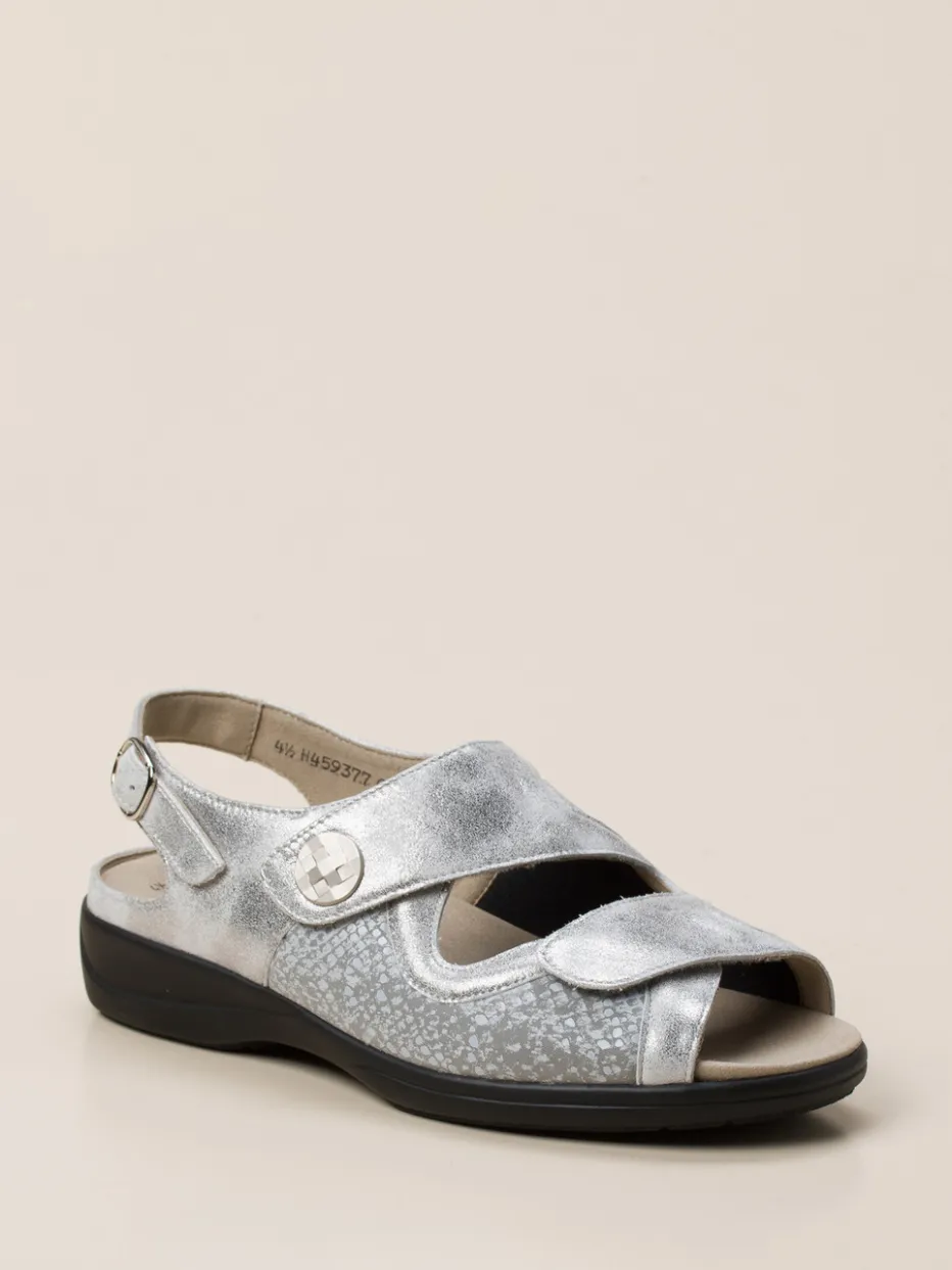 Damen Solidus – Komfortsandale aus Metallicleder silberfarben