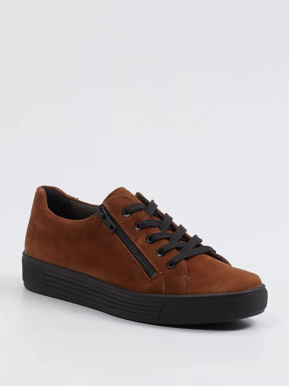 Bequemer Stil für den Alltag.Solidus präsentiert mit diesem Low-Top-Sneaker aus der Hazel-Form einen komfortbetonten Damenschuh mit hochwertigem Anspruch. Das mittelfarbene Veloursleder besitzt eine samtige Haptik und trifft auf eine klassische Silhouette mit schwarzer Schnürung sowie seitlichem Reißverschluss für leichtes Anziehen. Die profilierte Gummisohle bietet angenehm flexiblen Halt bei jedem Schritt. Mattschimmernde Oberflächen sowie Ton-in-Ton-Nähte unterstreichen den unaufgeregten Minimalismus im Retro-Stil. Die herausnehmbare, mit Leder beschichtete Einlegesohle macht ihn ideal für eigene Einlagen und sensible Füße. Passt hervorragend zu Casualwear in Naturtönen. Solidus-Komfort trifft auf urbanen Streetwear-Look – funktional, modern, hochwertig.