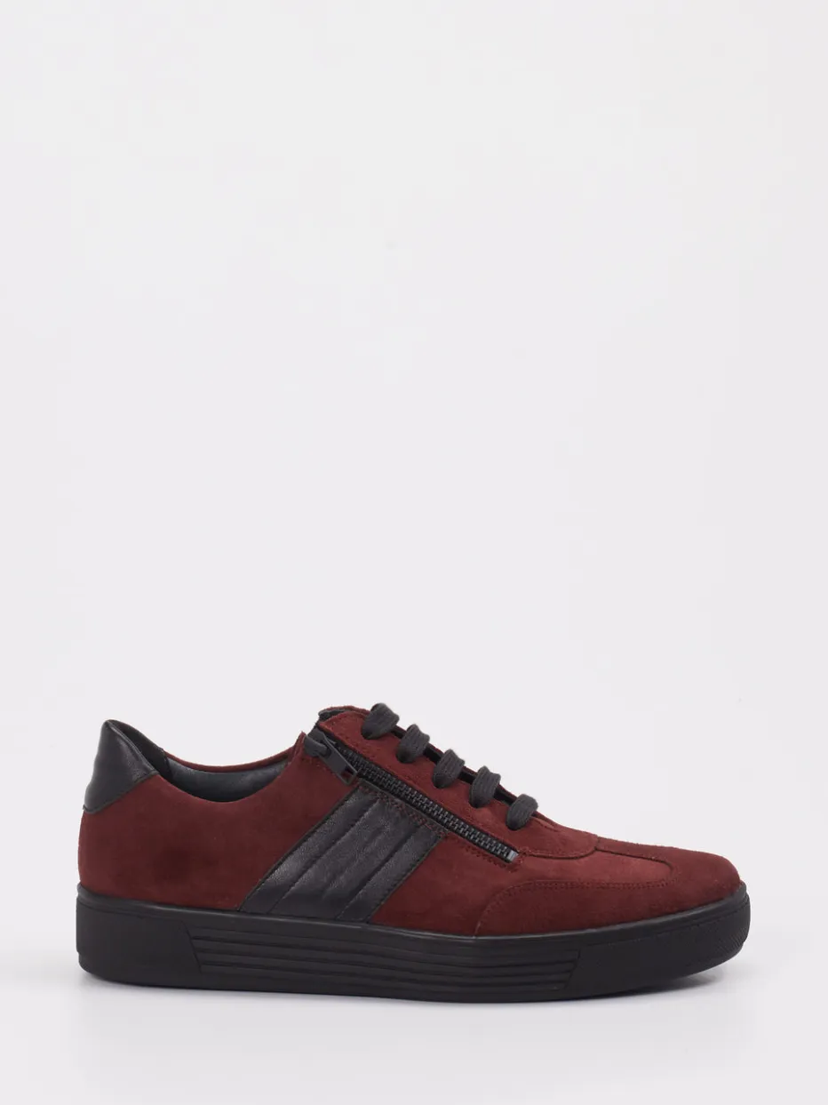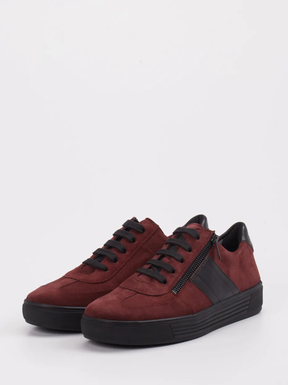 Modern trifft Funktionalität.Solidus präsentiert einen Herren-Sneaker, der durch Komfort und Purismus überzeugt. Für stilsichere Freizeit- oder Büro-Outfits bietet dieses Modell in gedecktem Bordeauxrot eine harmonisch-klassische Optik. Veloursleder mit samtig-matter Oberfläche trifft auf klare Rundform, akzentuiert von schwarzen Kontrastdetails und einem praktischen Reißverschluss. Glattleder an der Ferse und griffige Gummisohle unterstreichen die Alltagstauglichkeit. Der Hybrid aus Schnürung und Zipper erleichtert das Anziehen und passt ideal zu monochromen Looks der kommenden Saison. Solidus steht für bequeme Passformen und zeitlos-modernen Stil mit maximalem Komfort.