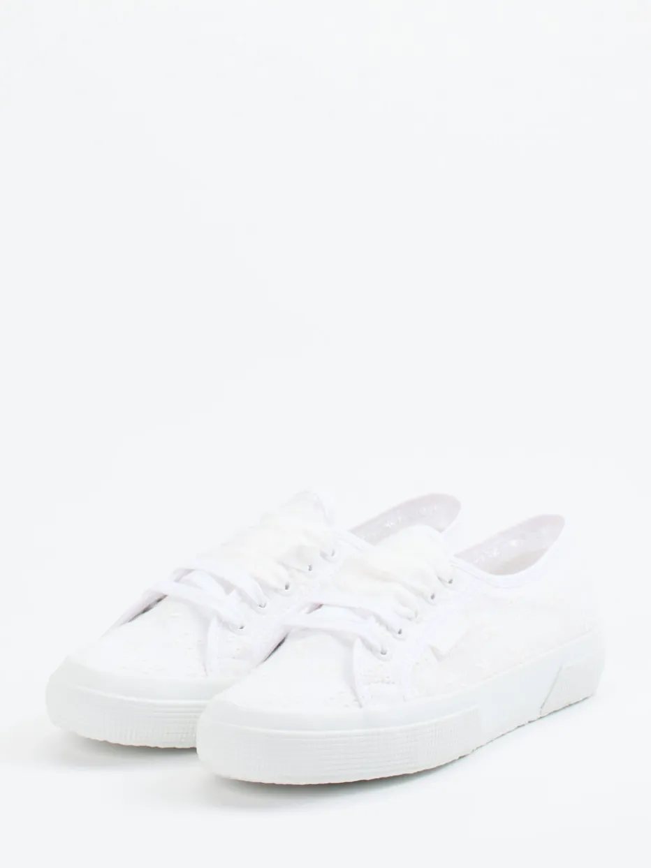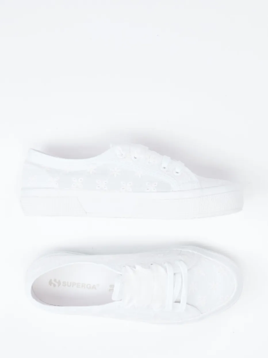 Romantisch veredelt für entspannte Sommertage.Die Marke Superga präsentiert hier einen Damen-Sneaker mit klarer Vintage-Note. Der Low-Top mit floraler Stickerei aus atmungsaktivem Textil vereint romantischen Stil mit urbaner Lässigkeit. Ideal für warme Tage überzeugt das weiße Modell mit einer filigranen Ton-in-Ton-Spitzenoptik auf Baumwoll-Canvas sowie auffälligen Satinschnürsenkeln. Die klassische, flach geschnittene Silhouette und eine vulkanisierte Gummisohle bescheren Alltagstauglichkeit und angenehmen Tragekomfort. Ein passender Begleiter zum Leinenkleid oder für den Strandurlaub. Ein feminines Sneaker-Highlight mit dem charmanten Design-Akzent von Superga.