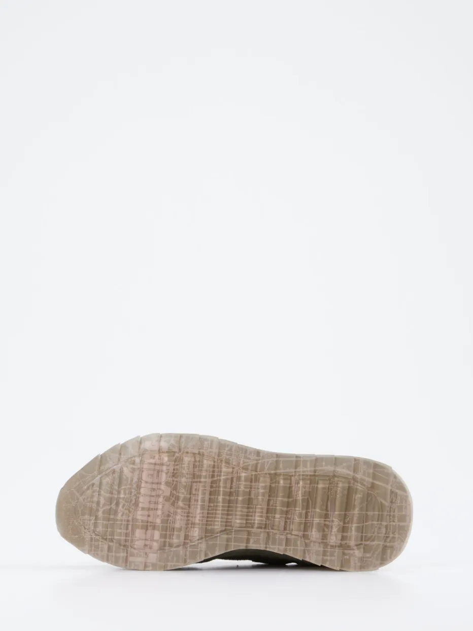 Urbaner Klassiker neu gedacht.THE HOFF BRAND präsentiert mit diesem Unisex-Sneaker ein Modell im angesagten Retro-Runner-Stil. Ideal für entspannte City-Walks oder stilvolle Freizeitlooks: Der Sneaker kombiniert weiches Veloursleder mit atmungsaktivem Mesh in olivgrüner Farbgebung, betont durch beige und taupefarbene Akzente. Sein klassisch flaches Design wird durch eine profilierte Gummisohle mit transparenter Stadtkarte zum auffälligen Blickfang. Die gepolsterte Schaftpartie und das Hightech-Mesh-Futter sorgen für Tragekomfort. Streetstyle-Einflüsse verschmelzen mit retroinspiriertem Lifestyle. Ein Sneaker, der Funktionalität mit ästhetischem Understatement verbindet – typisch THE HOFF BRAND.