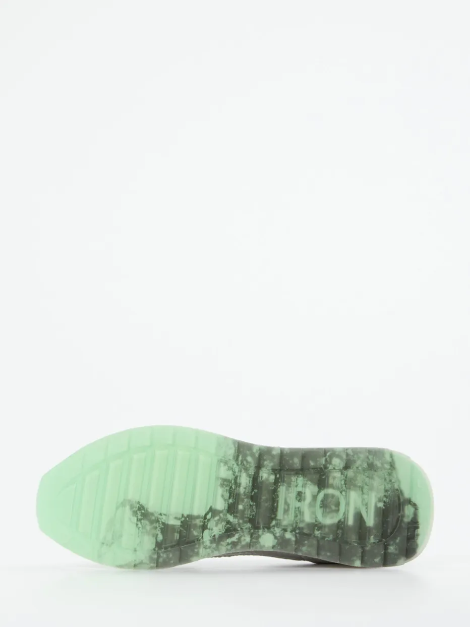 Silber trifft Streetstyle.THE HOFF BRAND interpretiert den Damen-Sneaker neu mit diesem Retro-Modell in Metallicoptik. Für den Stadtbummel oder das nächste Event liefert dieser Sneaker Style und Komfort zugleich. Das glänzende Metallicleder in Silber und Mintgrün trifft auf Textil mit atmungsaktivem Meshfutter. Die klassisch-sportliche Running-Silhouette wird durch farbige Einsätze, einen gepolsterten Schaftrand und Logo-Details an Ferse und Lasche hervorgehoben. Die transparente Gummisohle mit Motiv und der Memory-Foam sorgen für Komfort. Perfekt zu oversized Hoodies und Metallic-Accessoires kombinierbar. Ein progressiver Look mit hohem Tragekomfort und urbaner DNA.