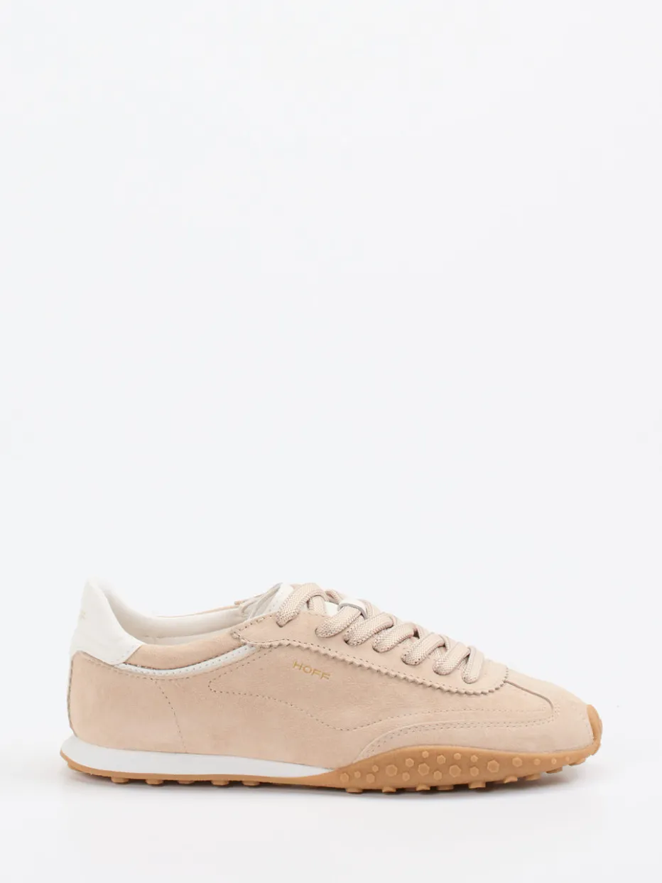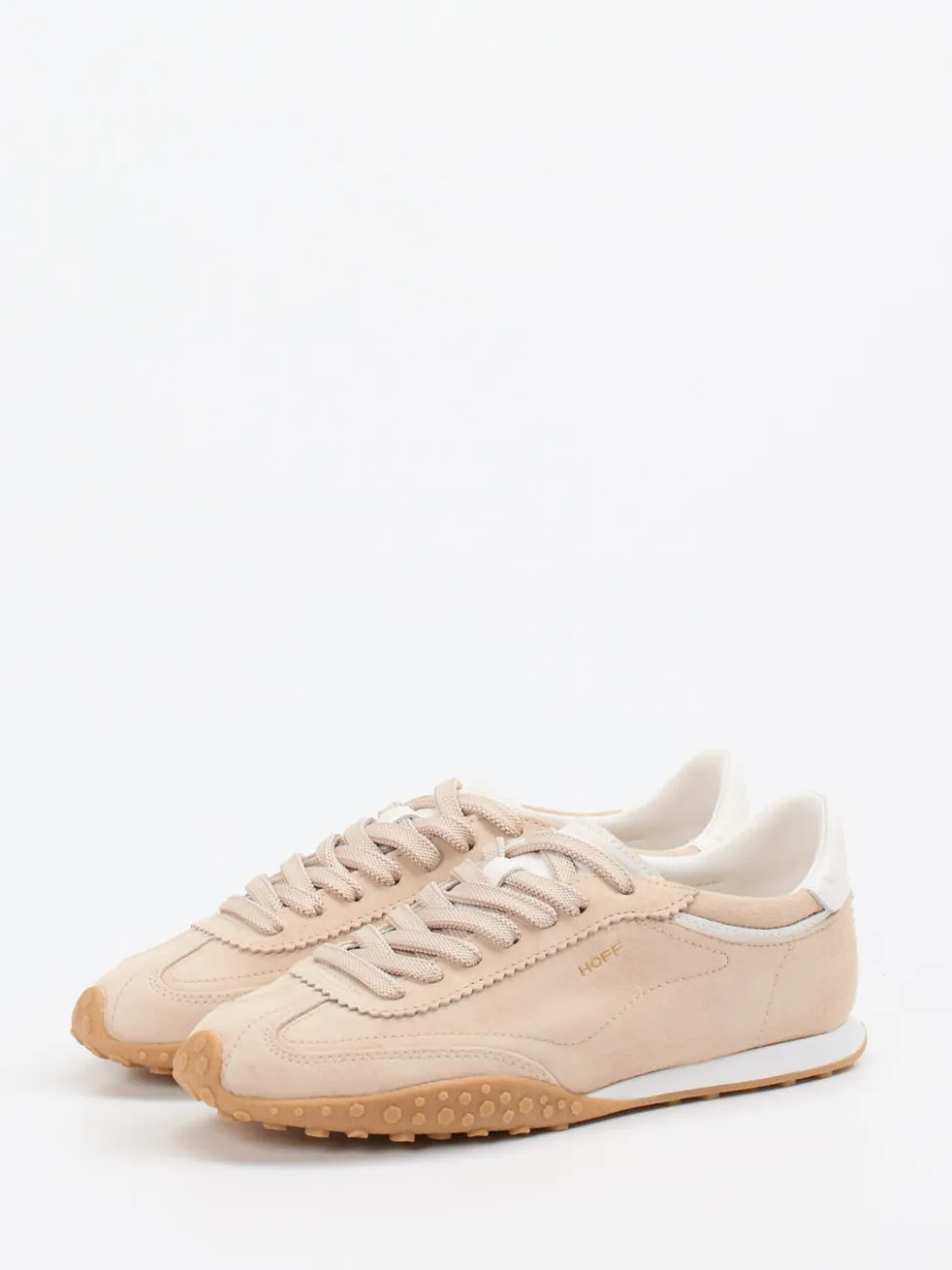 THE HOFF BRAND präsentiert einen Sneaker, der moderne Zurückhaltung mit Retro-Design vereint. Diese unisex Retro Runner begeistern im hellen Beigeton mit sportlichen Kontrasten in Weiß und Hellbraun.