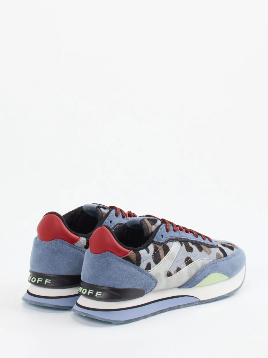 THE HOFF BRAND bringt mit diesem Retro-Sneaker ein unübersehbares Statement in die Damenkollektion. Ideal für urbane Styles im Alltag oder am Abend, vereint das Modell Veloursleder und Textil in einer spannenden Materialmischung mit samtiger, glatter oder strukturierter Oberfläche. Jeansblau dominiert den Look, begleitet von auffälligen Animal-Prints und transparenten Kunststoff-Overlays. Die asymmetrische Farbverteilung, kontrastfarbene Schnürsenkel und eine transluzente Gummisohle mit Leo-Muster unterstreichen den expressiven Charakter. Der gepolsterte Fersenbereich und das weiche Frotteefutter sorgen für Komfort. Lässt sich ideal zu sportiven Streetstyle-Windbreakern kombinieren. Design und Tragekomfort – unverkennbar THE HOFF BRAND.