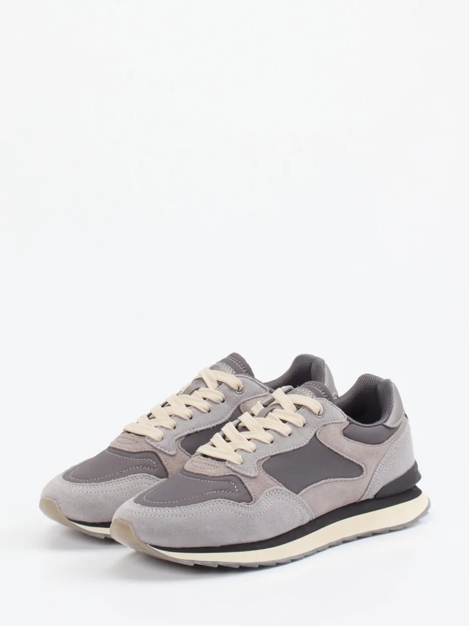 Stilvoll durch urbane Alltagsszenarien.Die Damen-Sneaker von THE HOFF BRAND interpretieren die klassische Retro-Runner-Silhouette in moderner Formensprache. Ideal für Freizeit oder City-Trip verschmilzt ein hochwertiger Materialmix aus Veloursleder und glattem Textil mit einer neutralen grau-beigen Farbpalette. Die tonalen Nähte, gestickte Markenlogos sowie das auffällige Stadtplan-Muster an der Transparentsohle setzen charakteristische Akzente. Durch das atmungsaktive Futter, das Polstermaterial und das herausnehmbare Fußbett bleibt der Tragekomfort auf hohem Niveau. Perfekt zu lässigen Looks mit Cropped Pants oder Oversized-Sweatshirts. Ein Sneaker, der Designbewusstsein und Alltagstauglichkeit markenprägend verbindet.