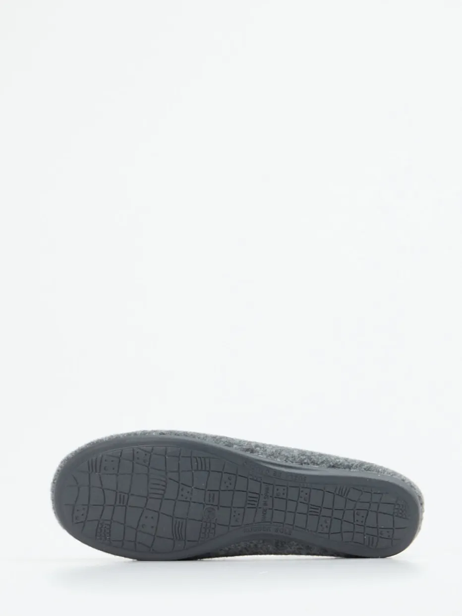 Für gemütliche Tage auf dem Sofa oder beim Lesen im Lieblingssessel bietet der anthrazitgraue Hausschuh den passenden Begleiter. Das Obermaterial besteht aus wärmendem Wollfilz, angenehm weich und mit einer filzigen Haptik. Eine kontrastfarbene Blütenapplikation auf dem Blatt unterstreicht die feminine Silhouette, die durch die runde, geschlossene Form geprägt ist. Die flexible Gummisohle mit rutschhemmendem Profil sorgt für sicheren Tritt auf glatten Böden. Stilistisch greift das Modell den aktuellen „Craftcore“-Trend auf und passt ideal zu kuscheligen Homewear-Looks in Naturtönen.