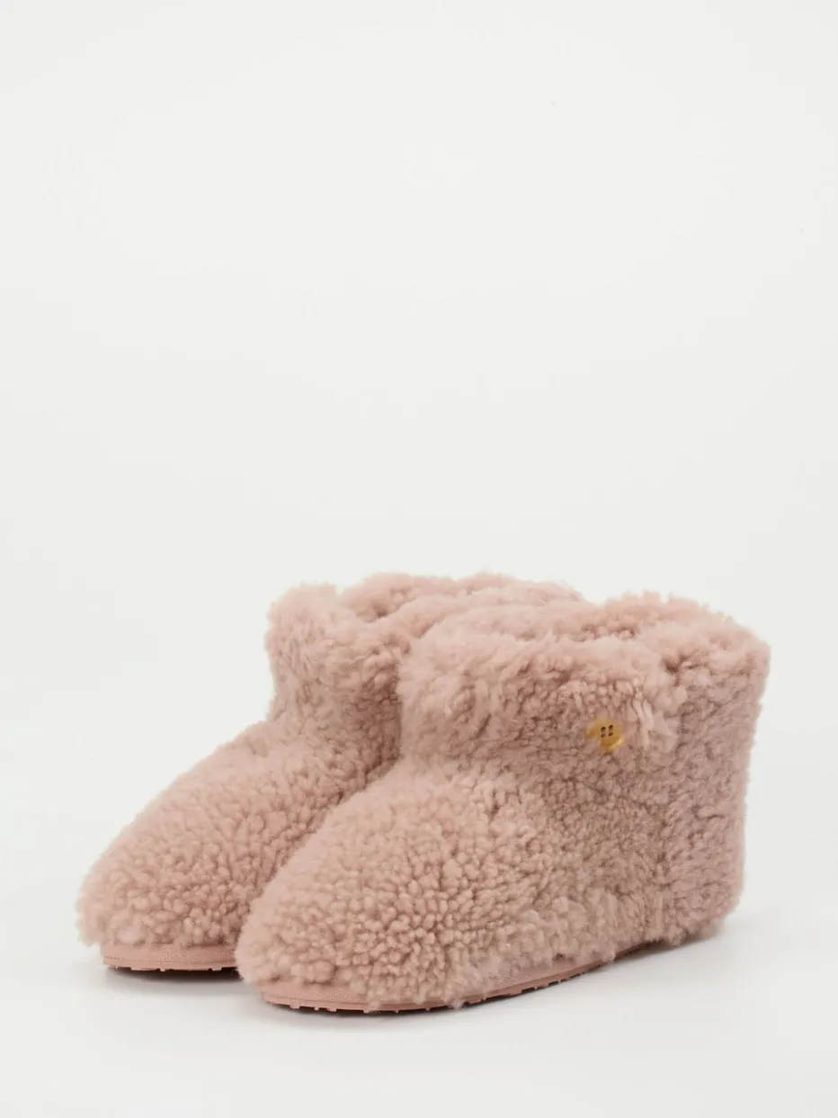 Diese knöchelhohen Booties kombinieren ultraweiches Teddy-Fell mit wärmendem Innenfutter aus Lammfell – ideal für stilvolle Entspannungstage daheim.