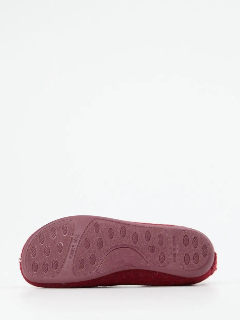 Natürliche Gemütlichkeit für kalte Tage.Thies bietet mit diesen Hüttenschuhen einen komfortorientierten Hausschuh für entspannte Momente zu Hause. Das Modell erfüllt alle Erwartungen an ein behagliches Wohnaccessoire: gefertigter Wollfilz mit filziger Oberfläche sorgt in Kombination mit dem Futter aus Schurwolle für atmungsaktive Wärme. Das kräftige Dunkelrot wird durch eine markante Zickzacknaht in Naturweiß akzentuiert. Die geschlossene, rund zulaufende Silhouette mit Zuglasche macht das An- und Ausziehen besonders komfortabel. Dank profilierter Gummisohle bleibt auch auf glatten Böden Trittsicherheit erhalten. Cottagecore und Natural Comfort treffen in diesem Design aufeinander – ideal für stilvolle Loungewear-Kombinationen. Mit Fokus auf Nachhaltigkeit und Handwerk überzeugt dieser Hausschuh durch naturnahe Qualität und funktionale Wärme.