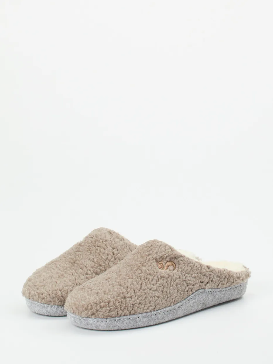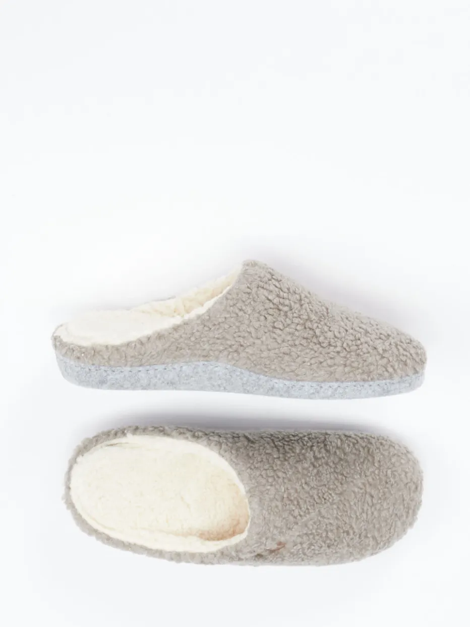 Kuscheligkeit trifft Alltagstauglichkeit.Die Marke Thies präsentiert komfortable Pantoffeln für entspannte Momente zu Hause. Mit ihrem flauschigen Textil aus Bio-Baumwolle in beigegrauem Teddyfleece erfüllen diese Schlupfschuhe das Bedürfnis nach Wärme, ohne Schwitzen zu verursachen. Ihre geschlossene Vorderpartie und der klassische Pantoffelschnitt sorgen für ein nostalgisch-gemütliches Tragegefühl. Dezente Ton-in-Ton-Stickerei unterstreicht den reduzierten Look, während die Filzsohle mit Anti-Rutsch-Funktion sicheren Halt auf glatten Böden bietet. Inspiriert von Scandi Comfort und Cottagecore repräsentieren sie den Loungewear-Trend der Saison. Perfekt kombinierbar mit Wollsocken oder flauschigem Hausanzug. Ein Hausschuh mit funktionalem Designfokus – gemütlich, nachhaltig, stilbewusst.