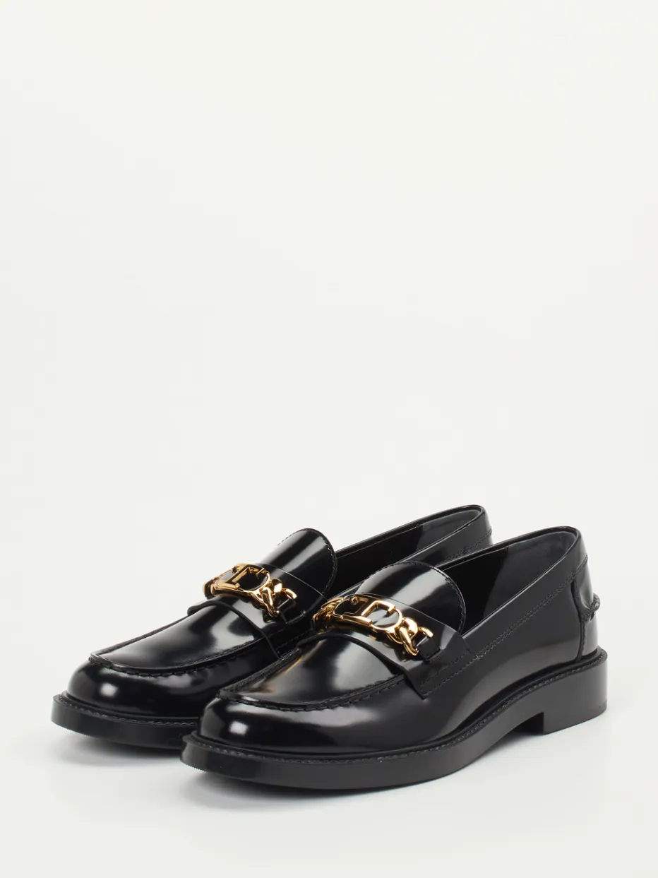 Dieser Loafer von Tod’s kombiniert italienische Handwerkskunst mit modernem Minimalismus. Glänzendes Leder und eine goldfarbene Spange verleihen dem Modell zeitlose Eleganz.
