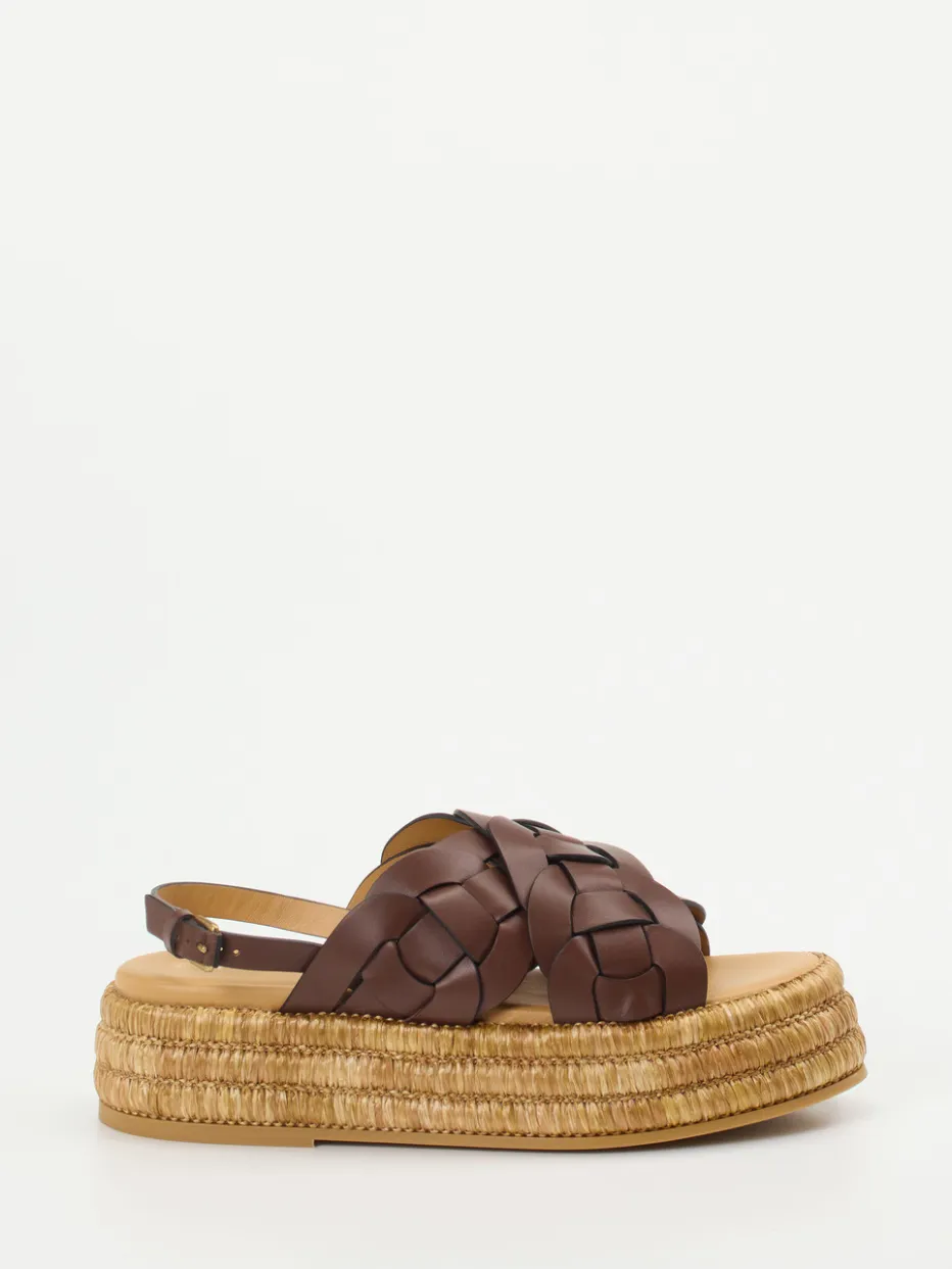 Edles Flechtleder trifft auf mediterranen Materialien-Mix: Diese Sandalen sind stilvoller Inbegriff von Komfort und Handwerkskunst.