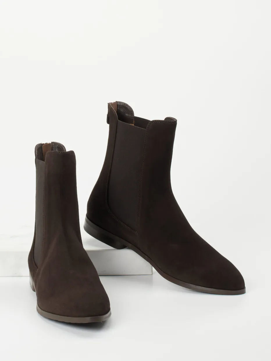 Klassisch und doch modern: Diese Chelsea Boots verbinden samtig-mattes Veloursleder mit funktionalen Details wie einem rückseitigen Reißverschluss.