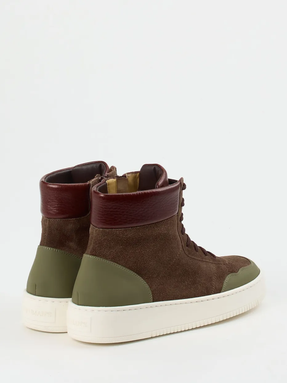 Der hochwertige High-Top Sneaker vereint samtiges Veloursleder mit dezenten Farbakzenten und urbaner Funktionalität – authentisch handgefertigt in Italien.