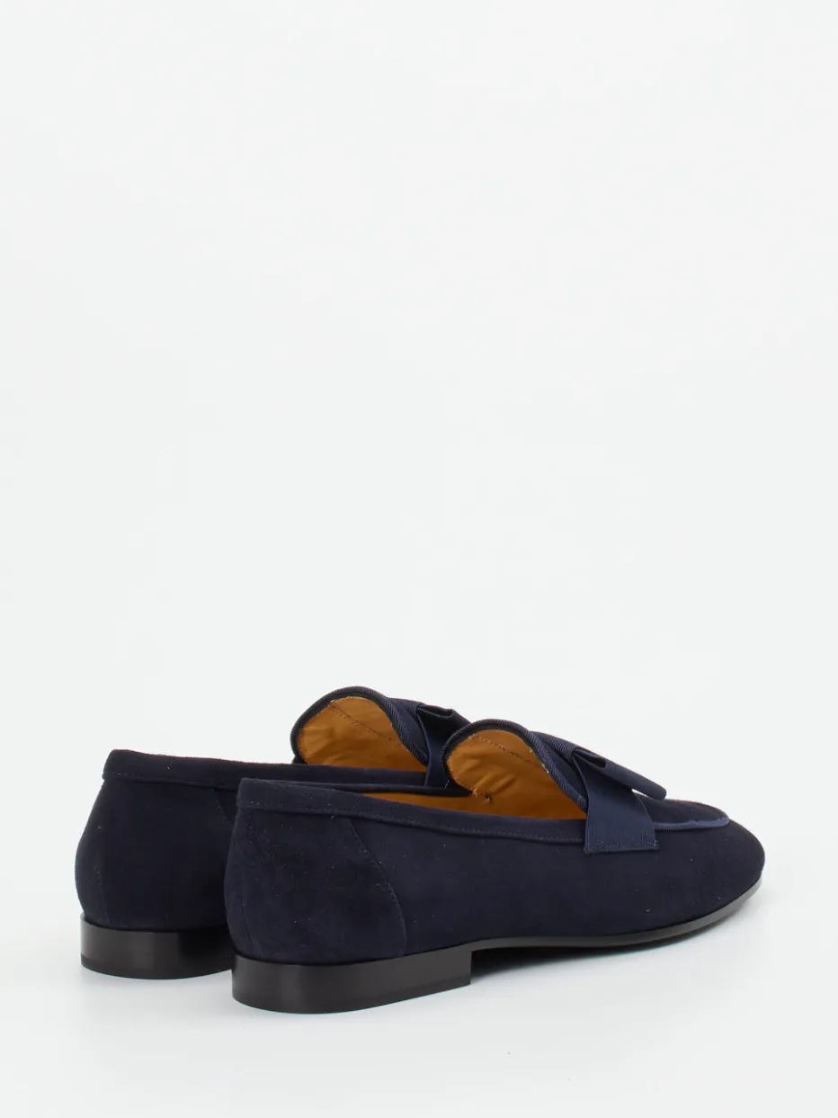 Dieser Loafer vereint samtig mattes Veloursleder mit klassischem Design und einer edlen Ripsbandschleife – perfekt für stilvolle Business- und Freizeitlooks im Sinne von ‚Quiet Luxury‘.