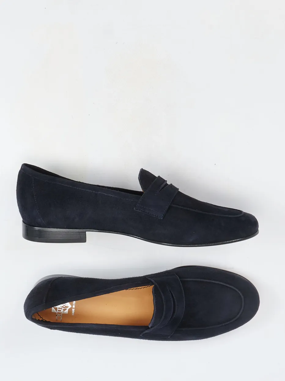 Minimalismus mit Raffinesse.Truman’s interpretiert den klassischen Damenloafer in edlem dunkelblauem Veloursleder. Ob im Büroalltag oder beim Stadtbummel – dieser Penny Loafer verspricht stilsichere Auftritte. Das samtig angeschliffene Veloursleder schmiegt sich an einen leicht verrundeten Leisten, akzentuiert durch einen tonigen Penny-Riegel. Die flache Silhouette mit Blockabsatz und rutschhemmender Leder-Gummisohle bringt Komfort und Bodenhaftung. Zeitlos, reduziert und wertig – ein Paradebeispiel für den Trend „Quiet Luxury“. Kombiniert zur schmalen Stoffhose oder zum Midirock entfaltet er besonders seine Wirkung. Ein stilvoller Klassiker mit italienischer Handwerksnote.