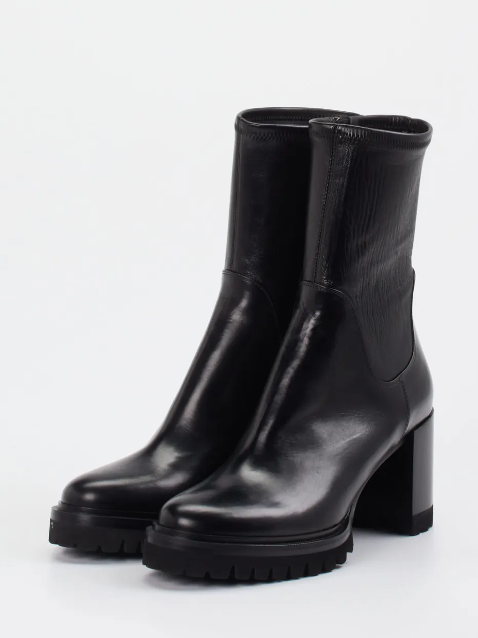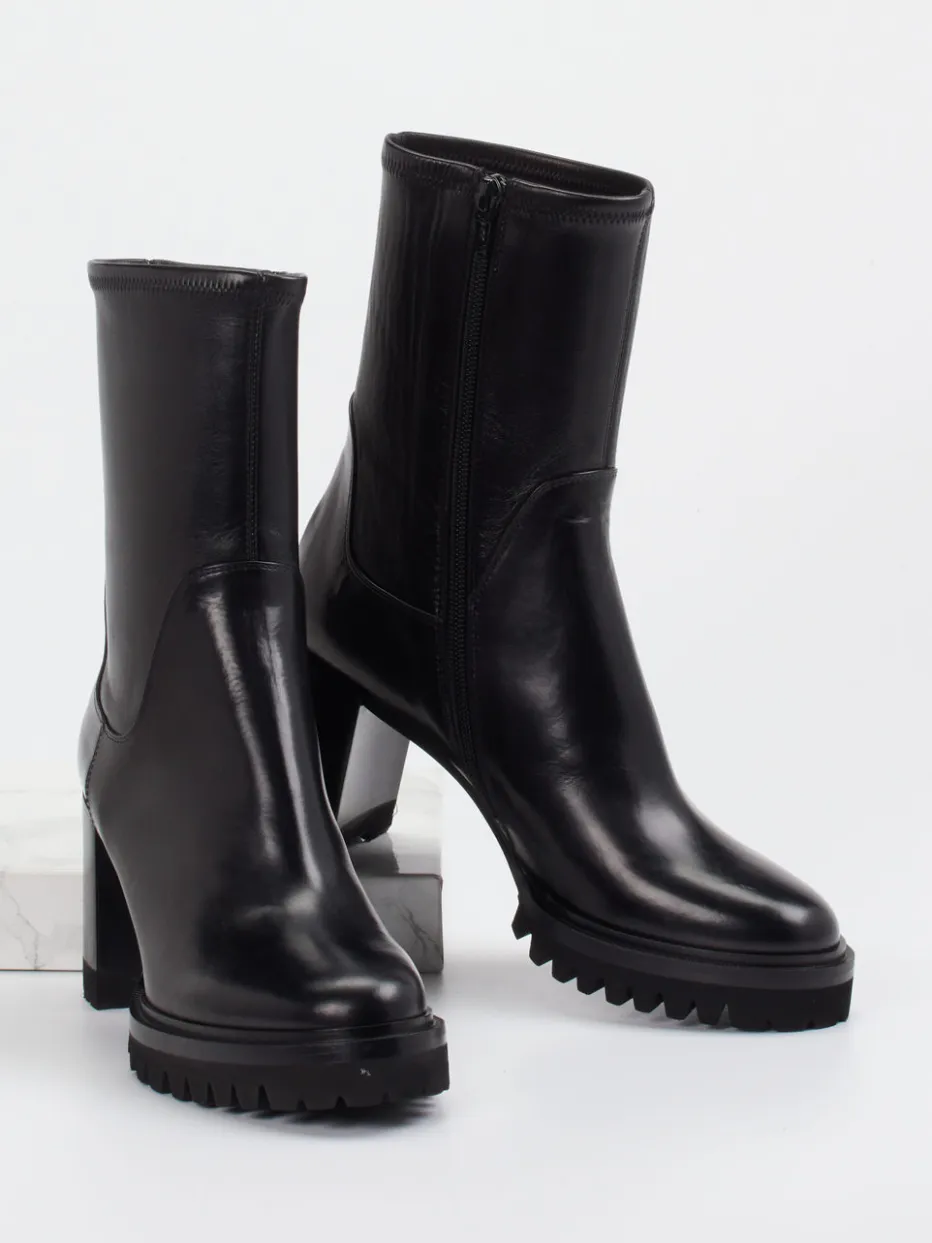Glanzvoller Auftritt mit City-Charakter.Truman’s präsentiert eine Damen-Stiefelette, die Minimalismus mit Trendbewusstsein verbindet. Für modeaffine Alltagsmomente und anspruchsvolle Business-Settings bietet dieses Modell eine klare Silhouette und urban geprägte Funktionalität. Gefertigt aus hochwertigem Glattleder mit glänzender Oberfläche und strukturierter Schaftpartie strahlt die schwarze Stiefelette Eleganz im dezenten Ton-in-Ton-Stil aus. Ein innenliegender Reißverschluss sorgt für Komfort, während Blockabsatz und stark profilierte Gummisohle sicheren Stand im herbstlichen Großstadtalltag garantieren. Stilistisch folgt sie dem „Lug Sole“-Trend und lässt sich ideal zu Kaschmir und Lederaccessoires kombinieren. Ein stilvolles Statement urbaner Schlichtheit mit TRUMAN’S Handschrift.